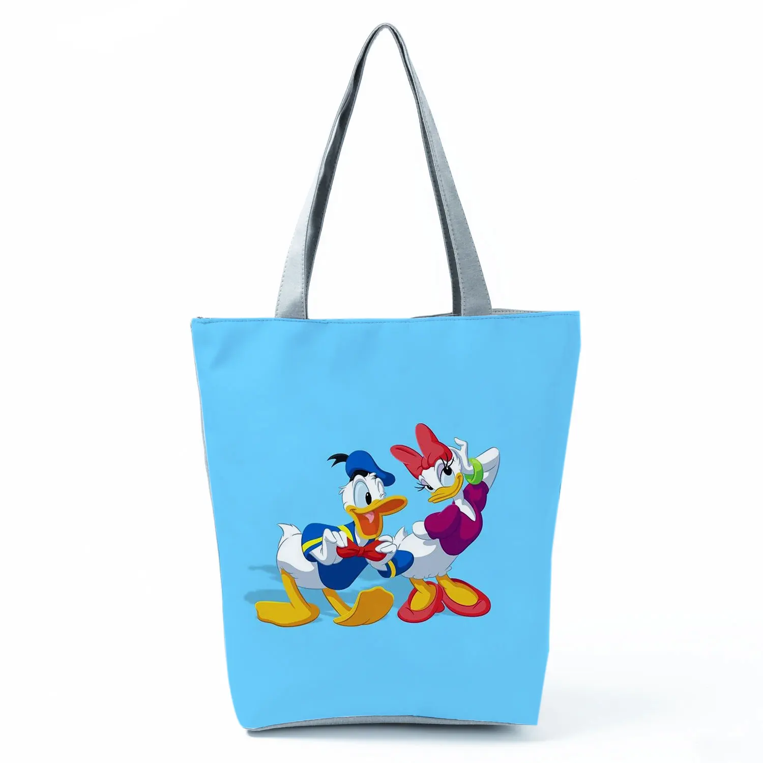 Сумка с мультипликационным принтом Дональд с рисунком утки, женская наплечная сумка Disney, модная сумка для покупок большой емкости, Синяя пляжная сумка-тоут с индивидуальным рисунком