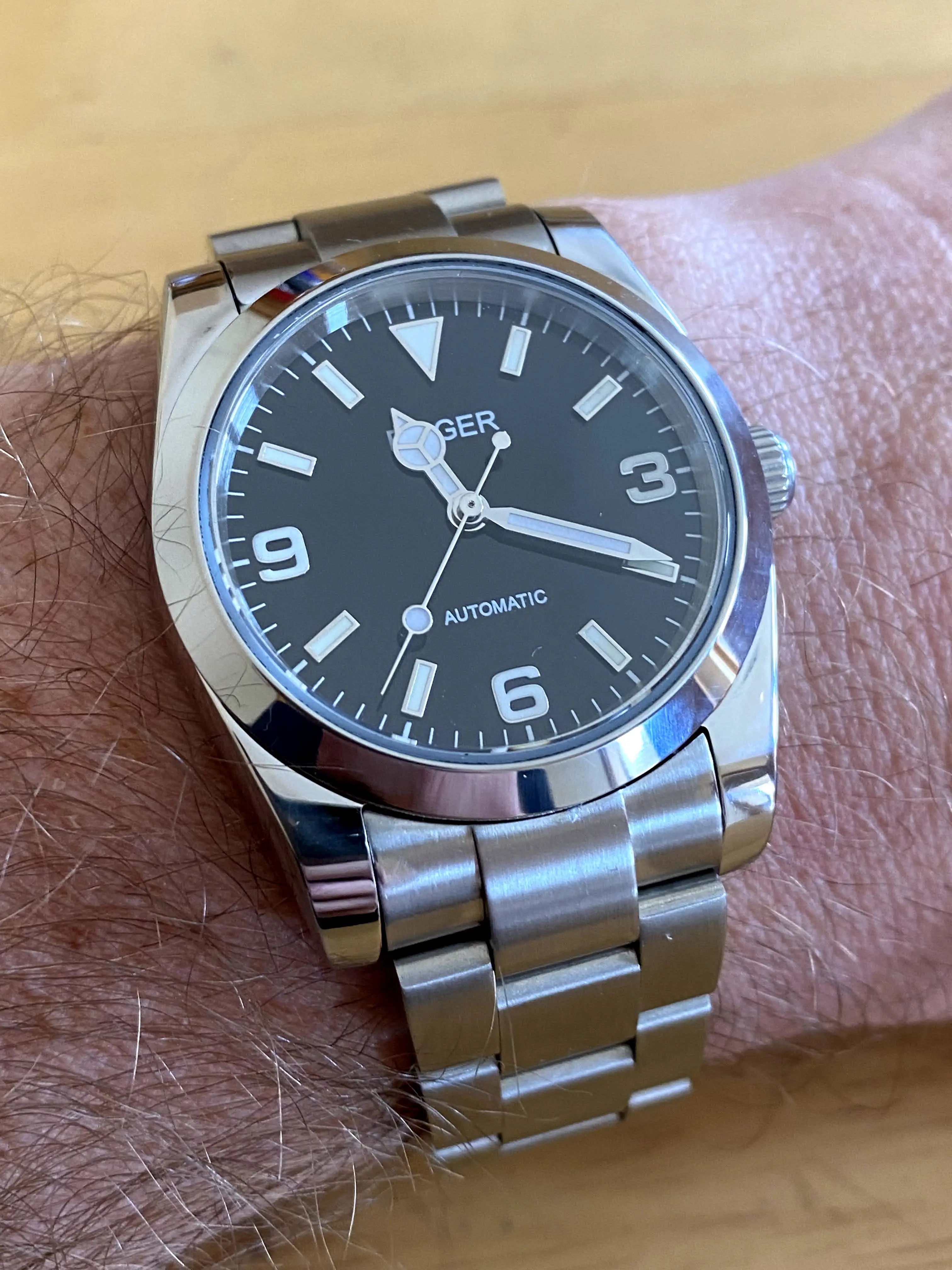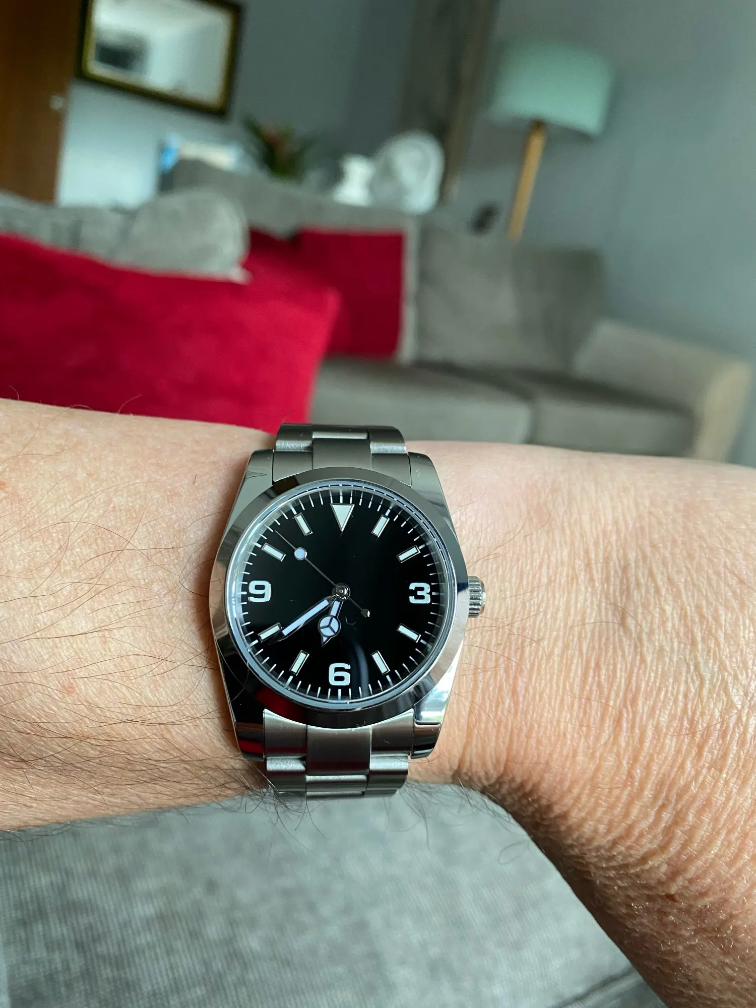 Часы как рекламируются. Очень прочный и очень тяжелый! Звенья для часов сплошные, цельные, выгравированы, чтобы выглядеть как 3 части звеньев, так что не слишком гибкие, но достаточно удобные. Застежка огромная, почти до больших, но микрорегулятор без инструмента работает хорошо. Я сделал выбор для Стерильного лица, который закончился до отличного стандарта с приложенными мерками и хорошим, если слегка слабым Лумом. Руки также завершены к высоким стандартам, снова с хорошим, если слабый lume. Вторая рука «подметает», как и другие часы движения NH35, которые у меня есть. Общий дизайн очень хороший, и я настоятельно рекомендую эти часы от этого поставщика. Все сообщения были отличными, и продукт был доставлен в Великобританию в течение 14 дней. Пожалуйста, обратите внимание, что если вы заказываете из Великобритании, НДС (20%) будет добавлен в окончательный счет продавцом-это требование налоговых органов Великобритании, а не выбор поставщиков. (На изображении показан размер часов для моего тонкого 6-дюймового запястья.)