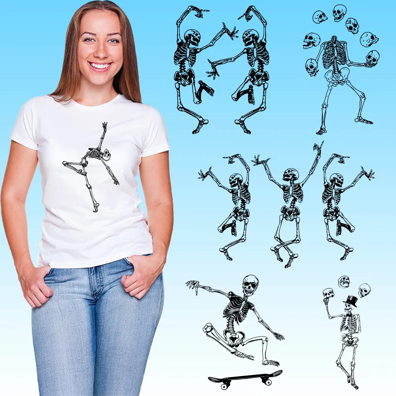 Термочувствительные нашивки с черепом и скелетом, термонаклейки, теплопередающие ПВХ нашивки, наклейки на одежду, Аппликации сделай сам