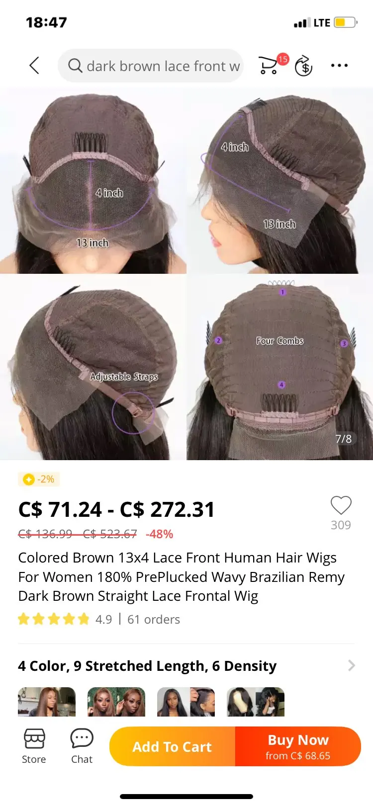 Страна: MY Color: Straight Density: 150density 4x4wig Stretched Length: 18inches Доставка: Fedex IP 27.11.2021