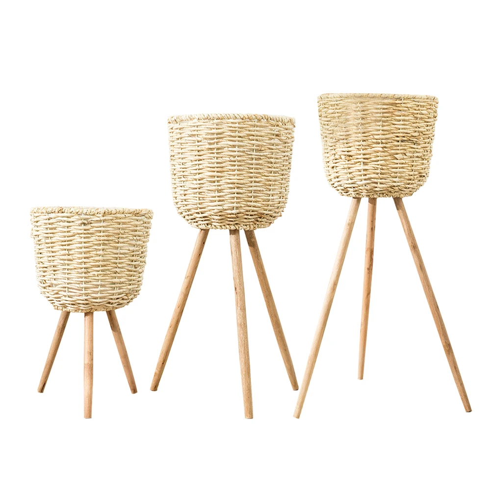 Напольная ваза, подставка для растений, держатель для цветочных горшков, стойка для горшков, ротанговая подставка для цветочной корзины, соломенные ремесла, домашний декорСлучайный цвет