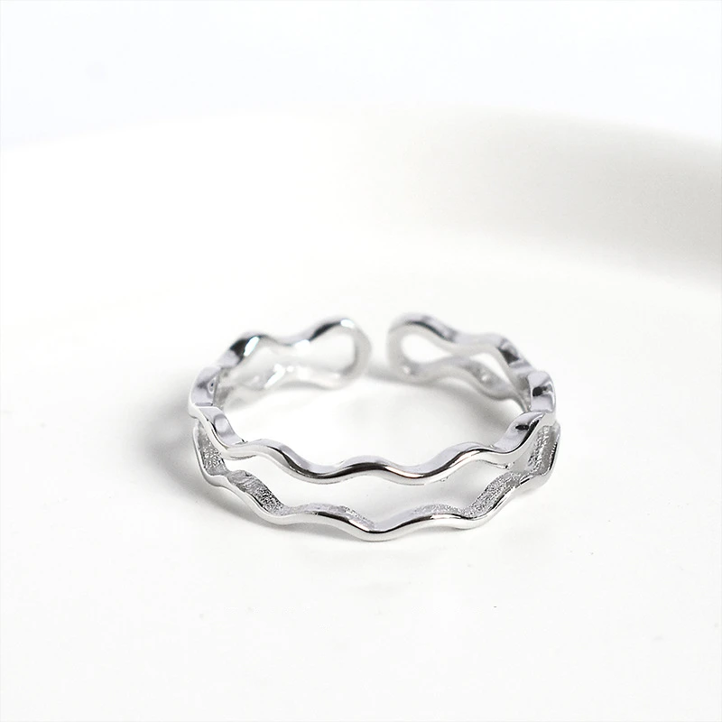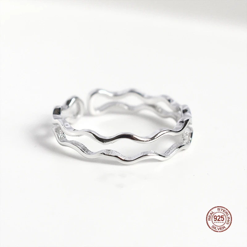 Женское двухуровневое регулируемое кольцо LKO, открытое ювелирное изделие из настоящего серебра 925 пробы с волнами, изящные украшения для подарка
