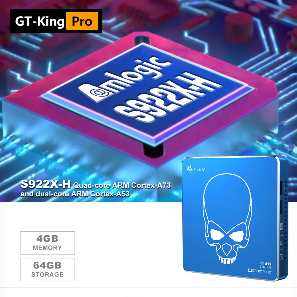 ТВ-приставка Beelink GT King Pro, Android 9, 4 Гб DDR4 64 Гб WIFI6 S922X-H 4K четыре ядра, Поддержка Dolby Audio DTS Smart Iptv, цифровая ТВ-приставка