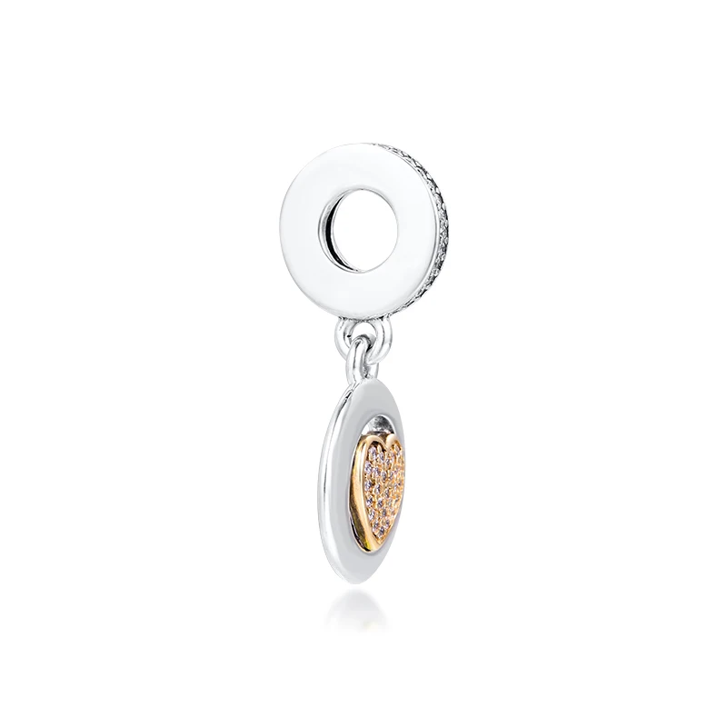 925 пробы серебро и золото 14 карат золото Фирменное сердце с позолоченным кольцом, соответственные Пандоре обаятельные Браслеты бусины для изготовления ювелирных изделий kralen berloques