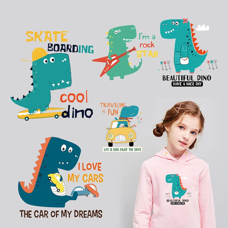 Милые Животные Динозавр патч для детской одежды теплопередача приложений Футболка теплопередача письмо аппликации виниловые наклейки