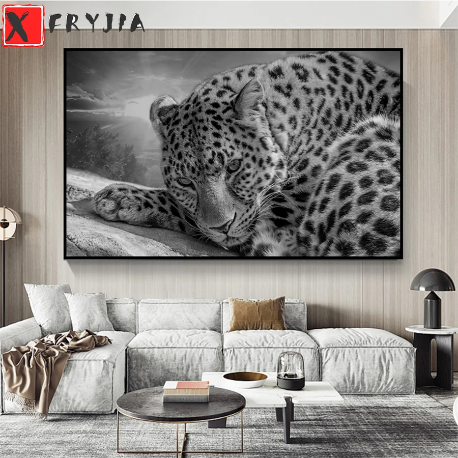 Картина из квадратных страз, черно-белая картина с изображением животных, леопардовая мозаика, картина для рукоделия, алмазная вышивка, распродажа, домашний декор