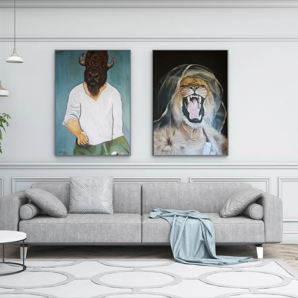 Черный дикий лев в костюме холст художественные плакаты и принты аб...