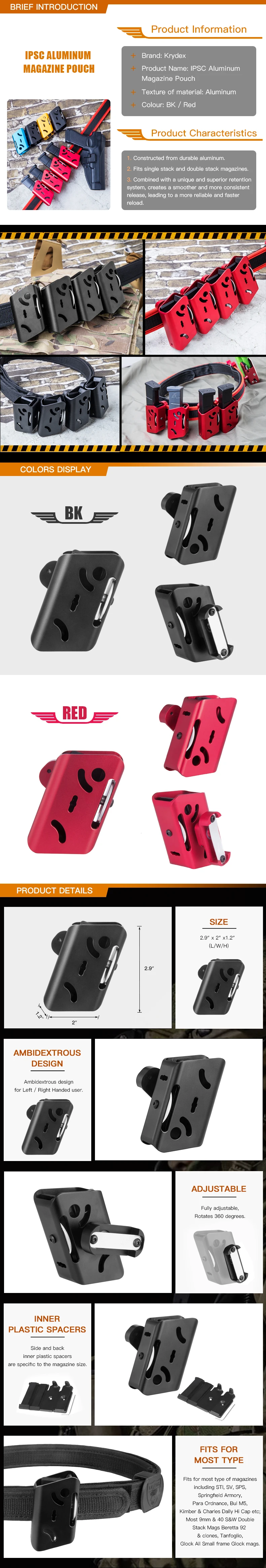 Алюминиевая кобура KRYDEX IPSC, красная подсумок для магазинов Mag, USPSA, для соревнований, стрельбы под разными углами, регулировка скорости, для стрельбы из пистолета