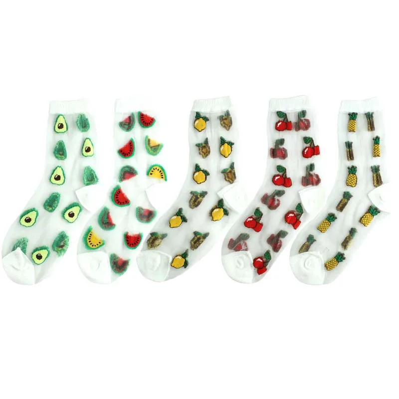 Ультратонкие прозрачные забавные носки из стекла и шелка с фруктами, авокадо, вишня, ананас, стеклянные кружевные носки в стиле Харадзюку