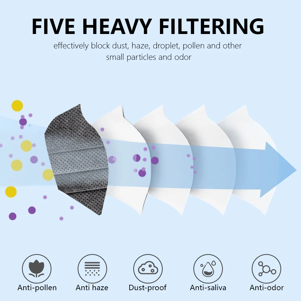 Респиратор с фильтром, 5 слоев активированного угля, 50-200 шт.