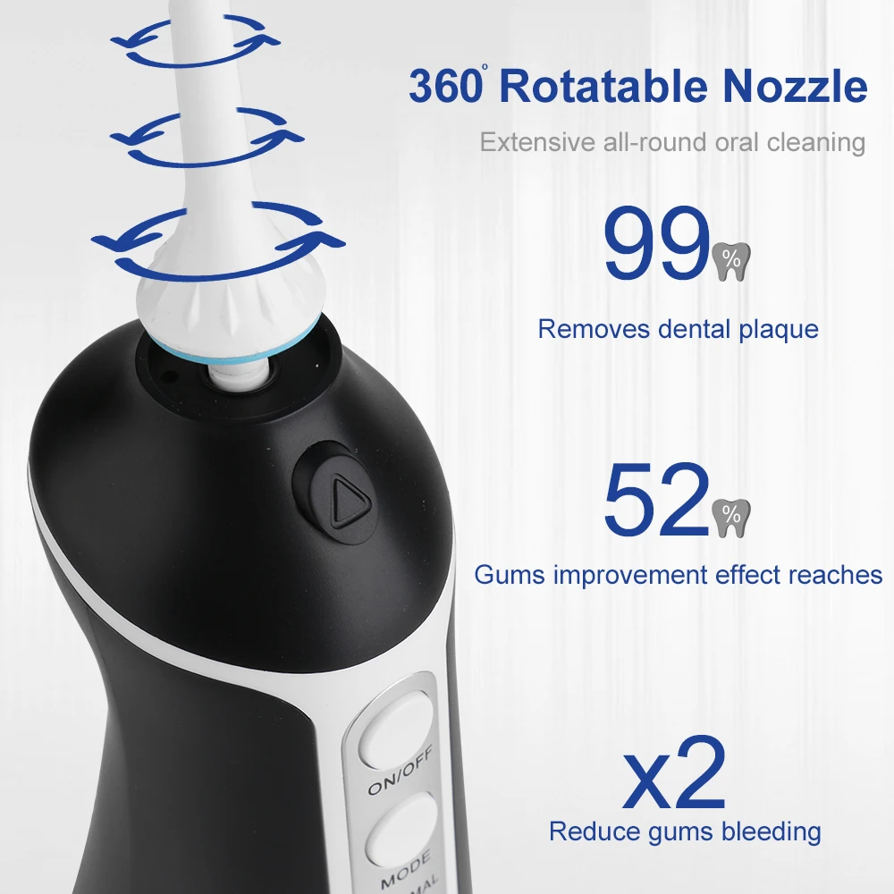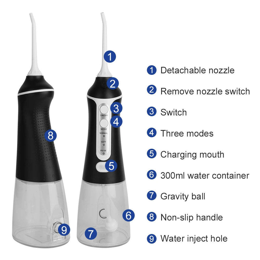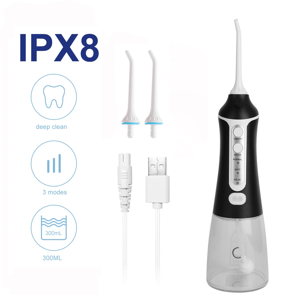 Основные характеристики:Размер изделия: L72 x W85 x H 218 ммВес нетто продукта: 245 гВес с посылка: 350 гРазмер цветной коробки: L85 * W80 * h235ммРезервуар для воды: 300 млНапряжение: 100-240 В переменного тока, 50 / 60 ГцБатарея: 1400mAh литий-ионные аккумуляторы в комплектеМощность: 5 ВтАдаптер: DC5V, 1AСкорость двигателя: 1400-1800 об/минРежимы очистки: 3 режима (нормальный, мягкий, импульсный)Давление воды: нормальный 60-100PSIМягкий: 30-60PSIРасход воды: ≥ 200 мл/мин.Стандарт шума: менее 55 DBSВремя зарядки: 4 часаВремя использования: около 15 дней (два раза/день)Уровень водонепроницаемости: IPX8 Особенности продукта:【 3 мойка для чистки 】ирригатор полости рта водяная нить имеет нормальный, мягкий, импульсный режим на выбор, который может удовлетворить различные потребности в уходе за полостью рта.【 IPX8 водонепроницаемый 】ipx8 водонепроницаемый дизайн предотвращает утечку и позволяет безопасно использовать зубную нить для душа в ванной комнате.【 300 мл большой резервуар для воды большая емкость для воды обеспечивает вам бесперебойную очистку зубов, нет необходимости в пополнении воды во время процесса использования. Водяная нить имеет эксклюзивный Запатентованный внутренний герметичный слив и съемный дизайн для чистого и удобного использования.【 Вращение на 360 ° и предотвращение проблем с зубами 】вращающаяся насадка на 360 ° помогает очистить каждый уголок рта. Применяется для пародонтита, брекетов, зубных имплантатов. Предотвращает плохое дыхание, желтые зубы, зубной налет, кариес, кровотечение десен.【Уникальный гравитационный шар дизайн 】независимо от того, с какого угла Используется, он может непрерывно поглощать воду, чтобы обеспечить бесперебойную очистку【Встроенная перезаряжаемая батарея 】 1400 мАч мощная литиевая батарея может быть полностью заряжена в течение 4 часов и может использоваться непрерывно в течение 15 дней.[Нержавеющий винт] Он может избежать нечистого ощущения, вызванного коррозией винта контактной воды во время использованияУпаковка включает:Ирригатор для полости рта, водный Флоссер * 1 шт.;Стандартный струйный наконечник * 2 шт.;Usb-кабель для зарядки * 1 шт.Руководство пользователя на английском языке * 1 шт.Теплые советы:1. Пожалуйста, внимательно прочитайте все инструкции перед использованием2. Не обращайте внимания на глаза при включении ирригатора полости рта4. При первом использовании, пожалуйста, выберите мягкий режим, а затем измените на обычный режим после адаптации