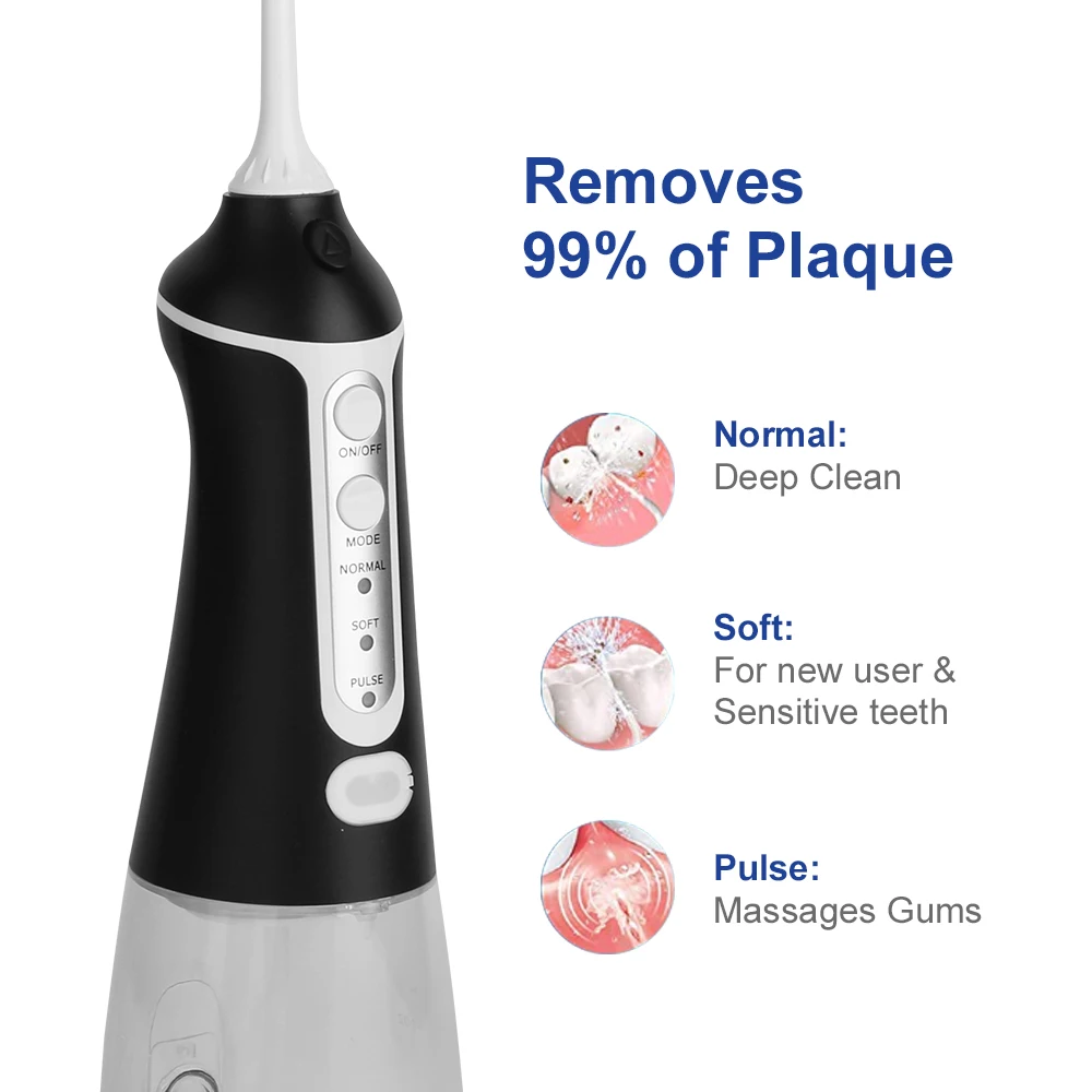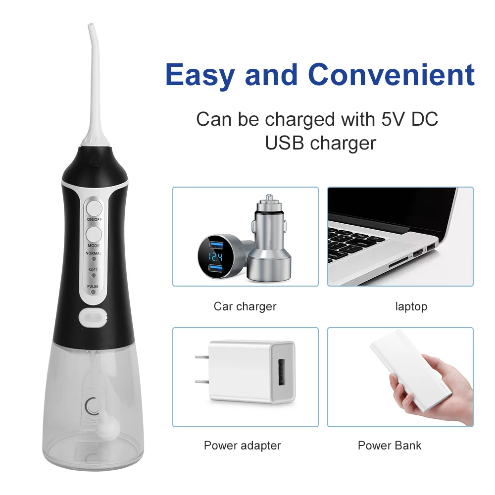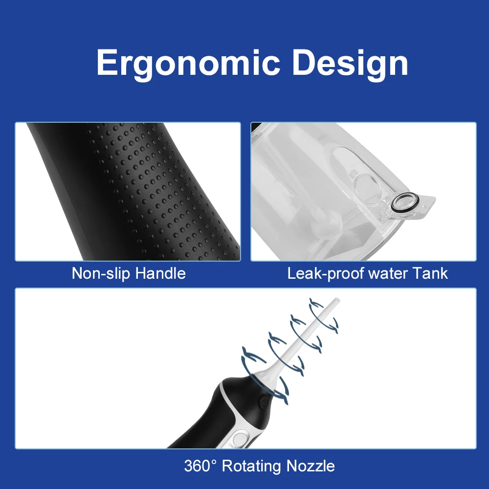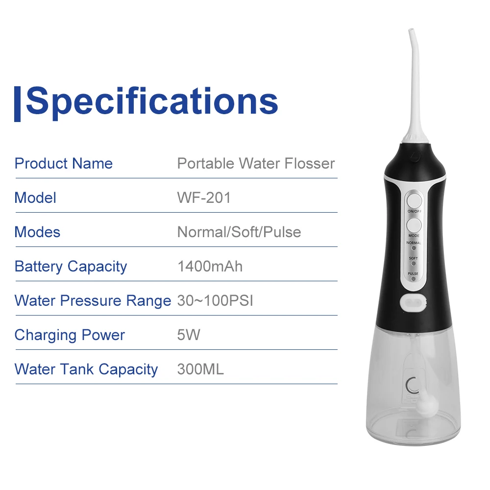 Основные характеристики:Размер изделия: L72 x W85 x H 218 ммВес нетто продукта: 245 гВес с посылка: 350 гРазмер цветной коробки: L85 * W80 * h235ммРезервуар для воды: 300 млНапряжение: 100-240 В переменного тока, 50 / 60 ГцБатарея: 1400mAh литий-ионные аккумуляторы в комплектеМощность: 5 ВтАдаптер: DC5V, 1AСкорость двигателя: 1400-1800 об/минРежимы очистки: 3 режима (нормальный, мягкий, импульсный)Давление воды: нормальный 60-100PSIМягкий: 30-60PSIРасход воды: ≥ 200 мл/мин.Стандарт шума: менее 55 DBSВремя зарядки: 4 часаВремя использования: около 15 дней (два раза/день)Уровень водонепроницаемости: IPX8 Особенности продукта:【 3 мойка для чистки 】ирригатор полости рта водяная нить имеет нормальный, мягкий, импульсный режим на выбор, который может удовлетворить различные потребности в уходе за полостью рта.【 IPX8 водонепроницаемый 】ipx8 водонепроницаемый дизайн предотвращает утечку и позволяет безопасно использовать зубную нить для душа в ванной комнате.【 300 мл большой резервуар для воды большая емкость для воды обеспечивает вам бесперебойную очистку зубов, нет необходимости в пополнении воды во время процесса использования. Водяная нить имеет эксклюзивный Запатентованный внутренний герметичный слив и съемный дизайн для чистого и удобного использования.【 Вращение на 360 ° и предотвращение проблем с зубами 】вращающаяся насадка на 360 ° помогает очистить каждый уголок рта. Применяется для пародонтита, брекетов, зубных имплантатов. Предотвращает плохое дыхание, желтые зубы, зубной налет, кариес, кровотечение десен.【Уникальный гравитационный шар дизайн 】независимо от того, с какого угла Используется, он может непрерывно поглощать воду, чтобы обеспечить бесперебойную очистку【Встроенная перезаряжаемая батарея 】 1400 мАч мощная литиевая батарея может быть полностью заряжена в течение 4 часов и может использоваться непрерывно в течение 15 дней.[Нержавеющий винт] Он может избежать нечистого ощущения, вызванного коррозией винта контактной воды во время использованияУпаковка включает:Ирригатор для полости рта, водный Флоссер * 1 шт.;Стандартный струйный наконечник * 2 шт.;Usb-кабель для зарядки * 1 шт.Руководство пользователя на английском языке * 1 шт.Теплые советы:1. Пожалуйста, внимательно прочитайте все инструкции перед использованием2. Не обращайте внимания на глаза при включении ирригатора полости рта4. При первом использовании, пожалуйста, выберите мягкий режим, а затем измените на обычный режим после адаптации