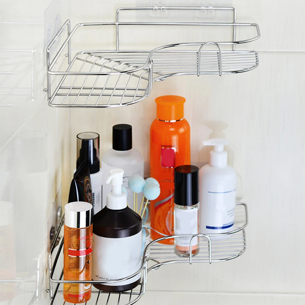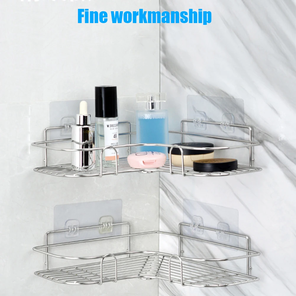 Стойка для хранения в ванной из нержавеющей стали, без дырочек, треугольный слой, настенная полка для хранения для ванной, кухни, спальни