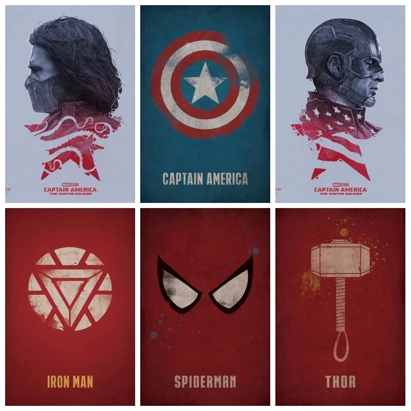 Картина на холсте Marvel мстители, постеры с супергероями из фильмов Капитан Америка, настенные художественные креативные Комбинированные Картины, украшение