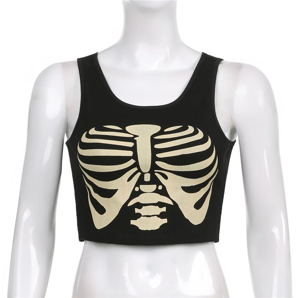Кроп-топ женский с рисунком скелета, модная пикантная майка, вязана...