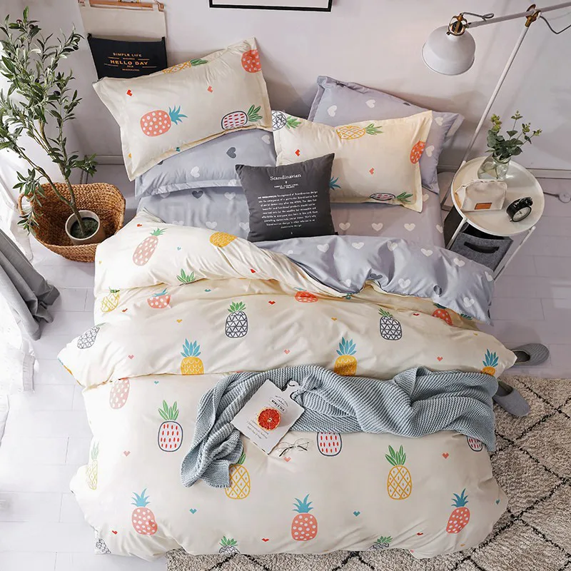 Удобный комплект постельного белья высокого качества, домашний комплект постельного белья с милым рисунком AB, двухстороннее постельное белье, пододеяльник, наволочка, 4 шт.