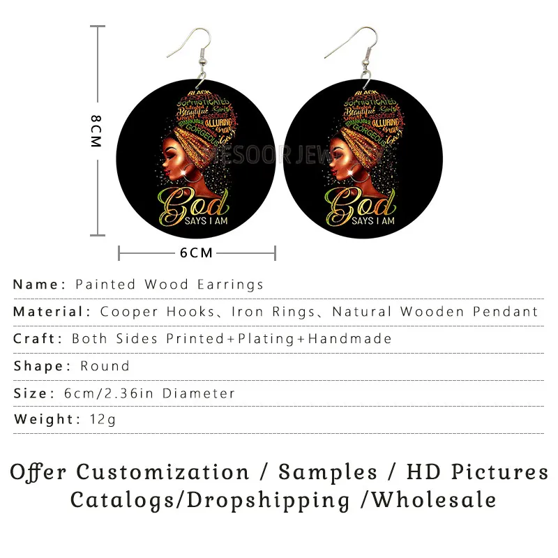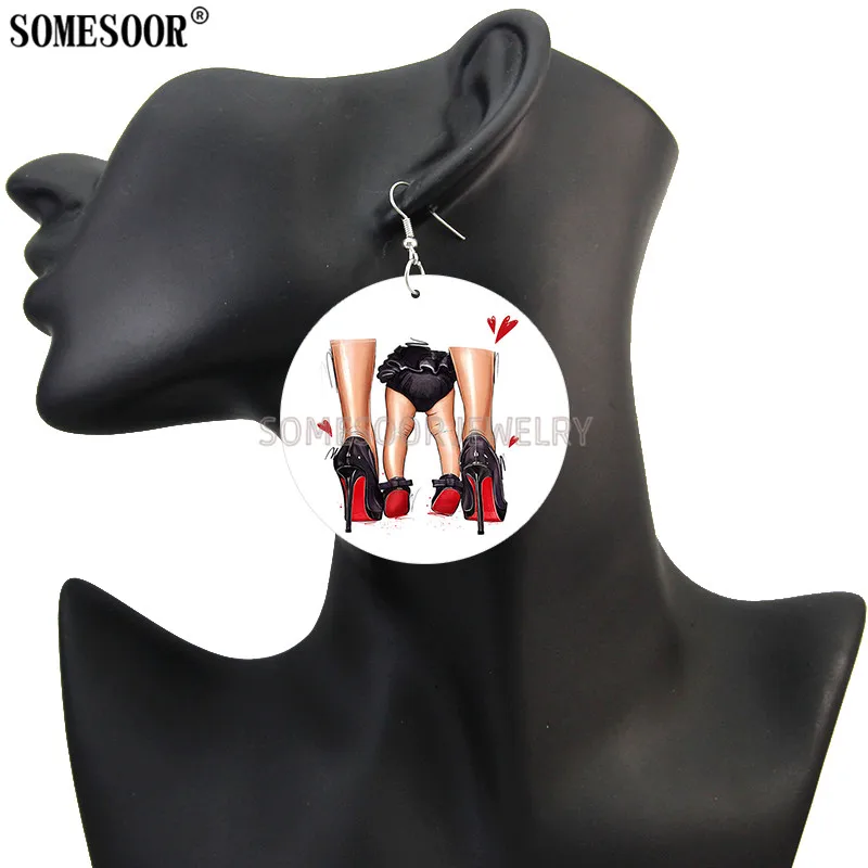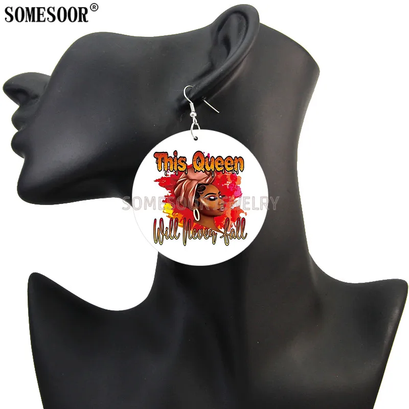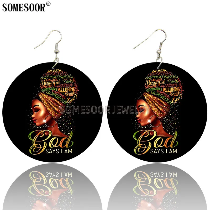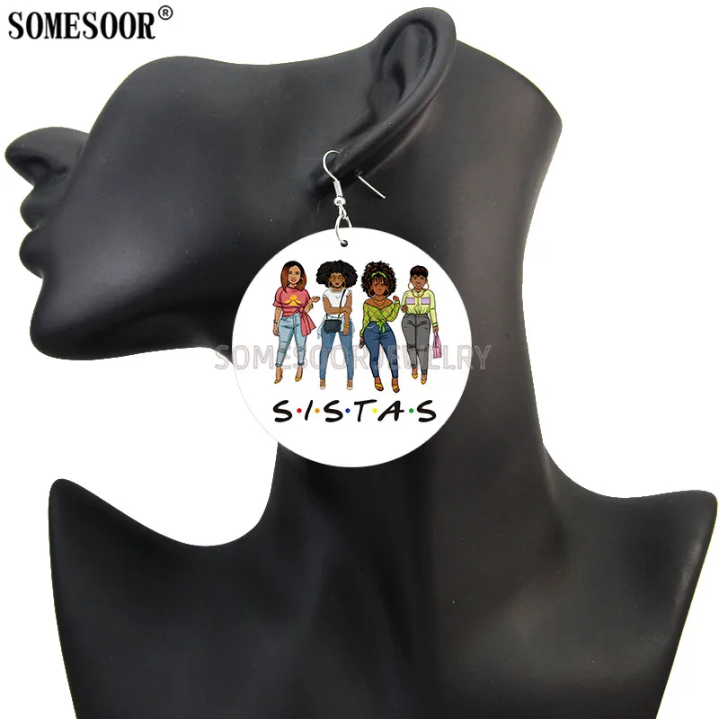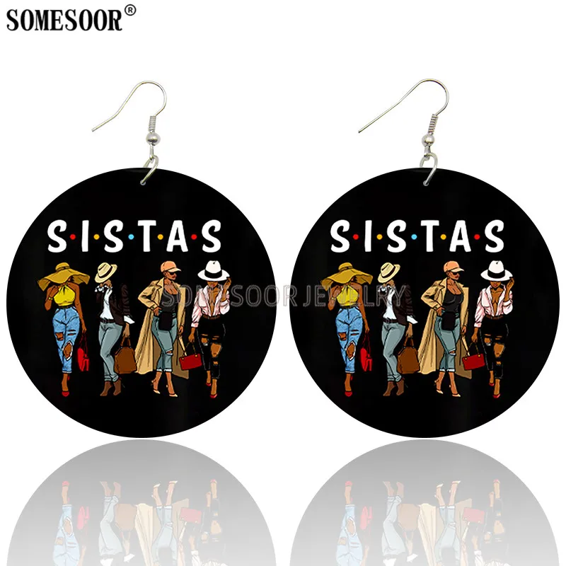 Ювелирные изделия SOMESOOR TV Play sista черные стойкие деревянные двойные стороны с принтом Висячие африканские серьги для женщин Подарки