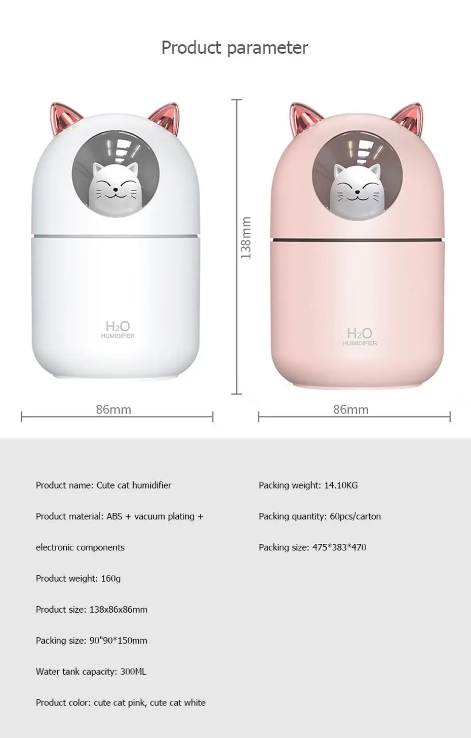 Увлажнитель воздуха с милым Кроликом, 300 мл, ультратихий, USB