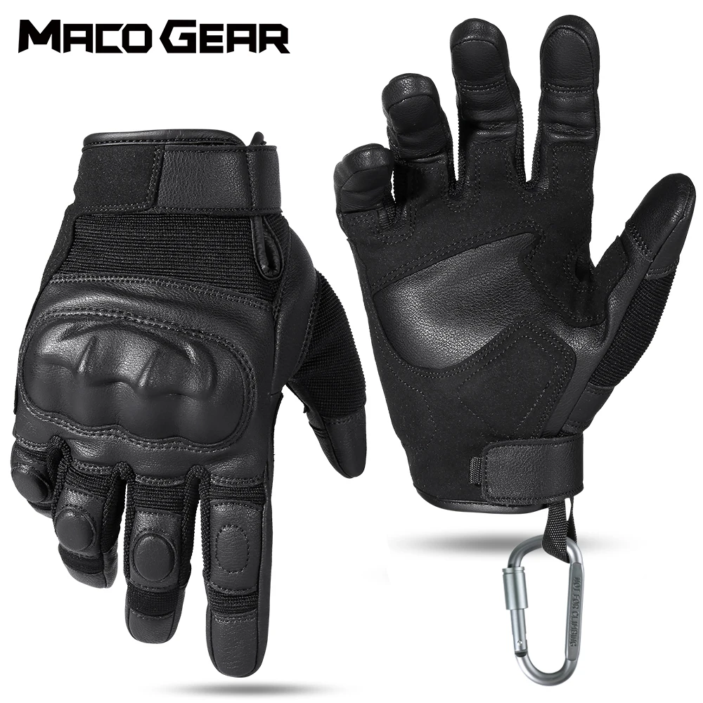 Перчатки мужские кожаные, черные, с пальцами, военные, тренировочные, спортивные, для скалолазания, стрельбы, велосипеда, охоты, велоспорта