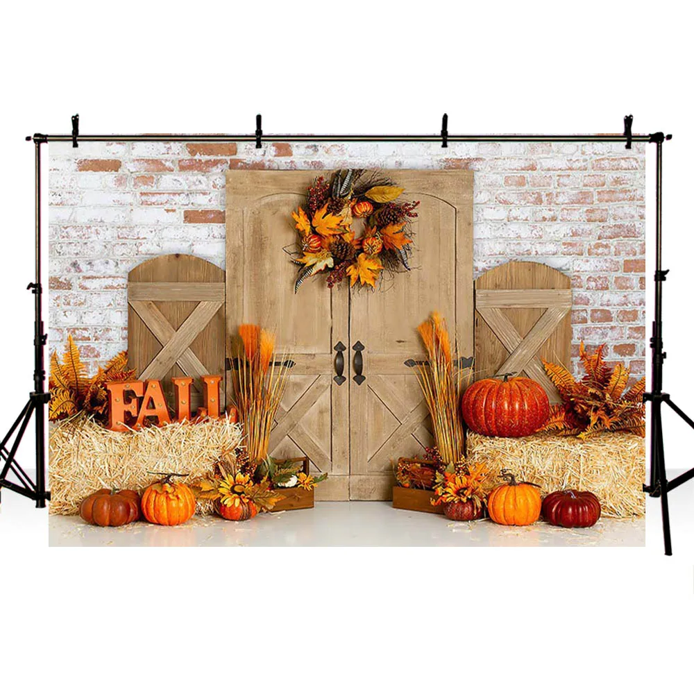 Фон для фотосъемки Осенняя Тыква цветочный рынок белая ваза деревян...