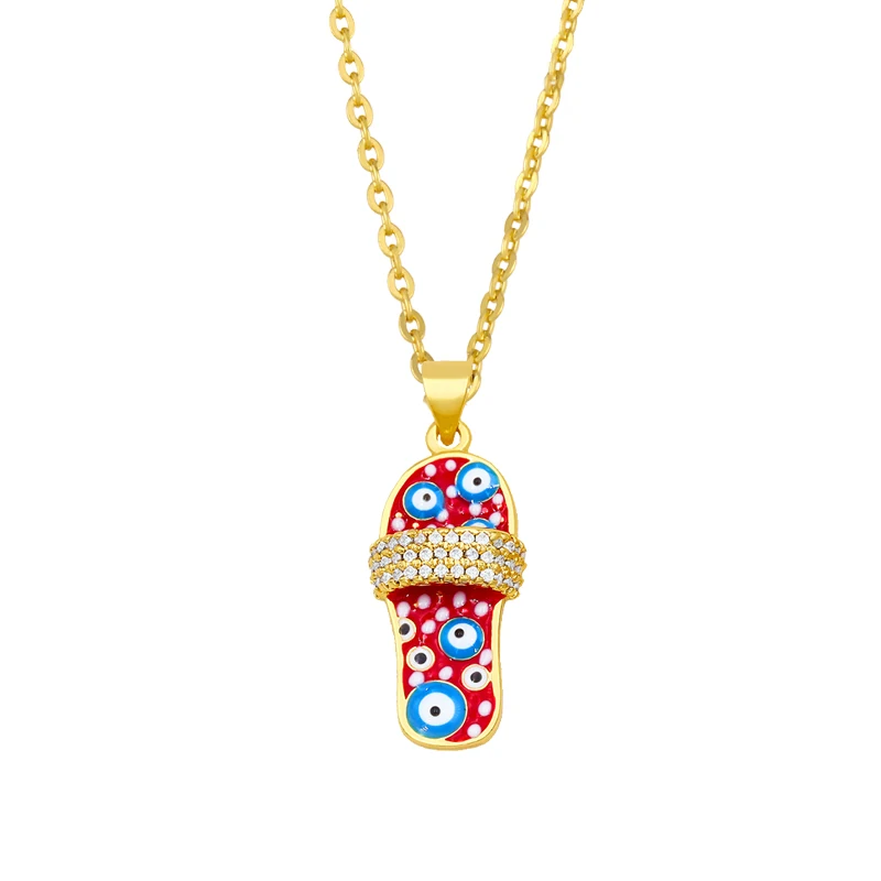 FLOLA милые эмали кулон туфелька для женщин, позолоченные, голубой, Дурной глаз ожерелье с подвеской CZ со стразами оптовая продажа ювелирные изделия подарки nkev51