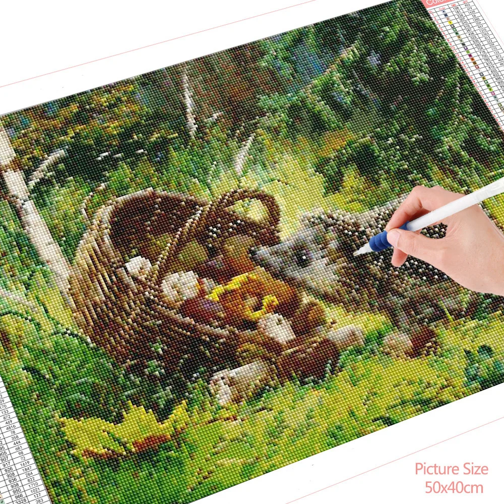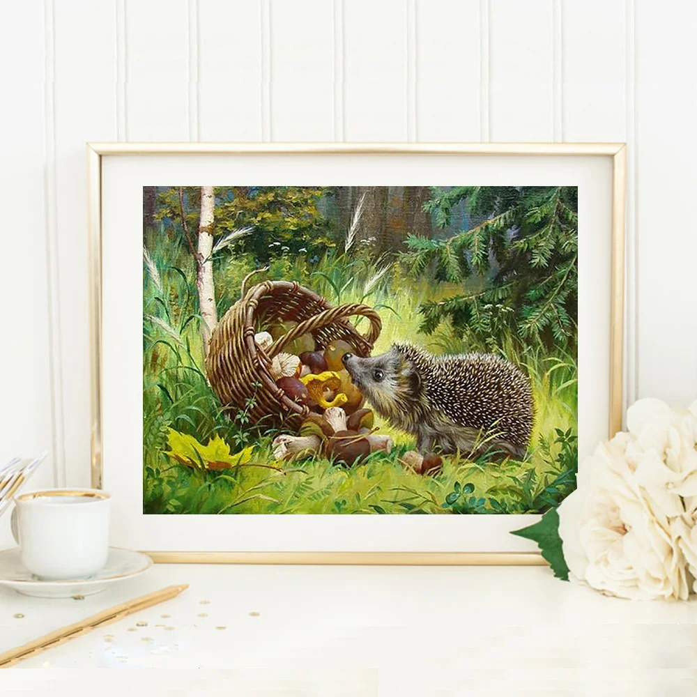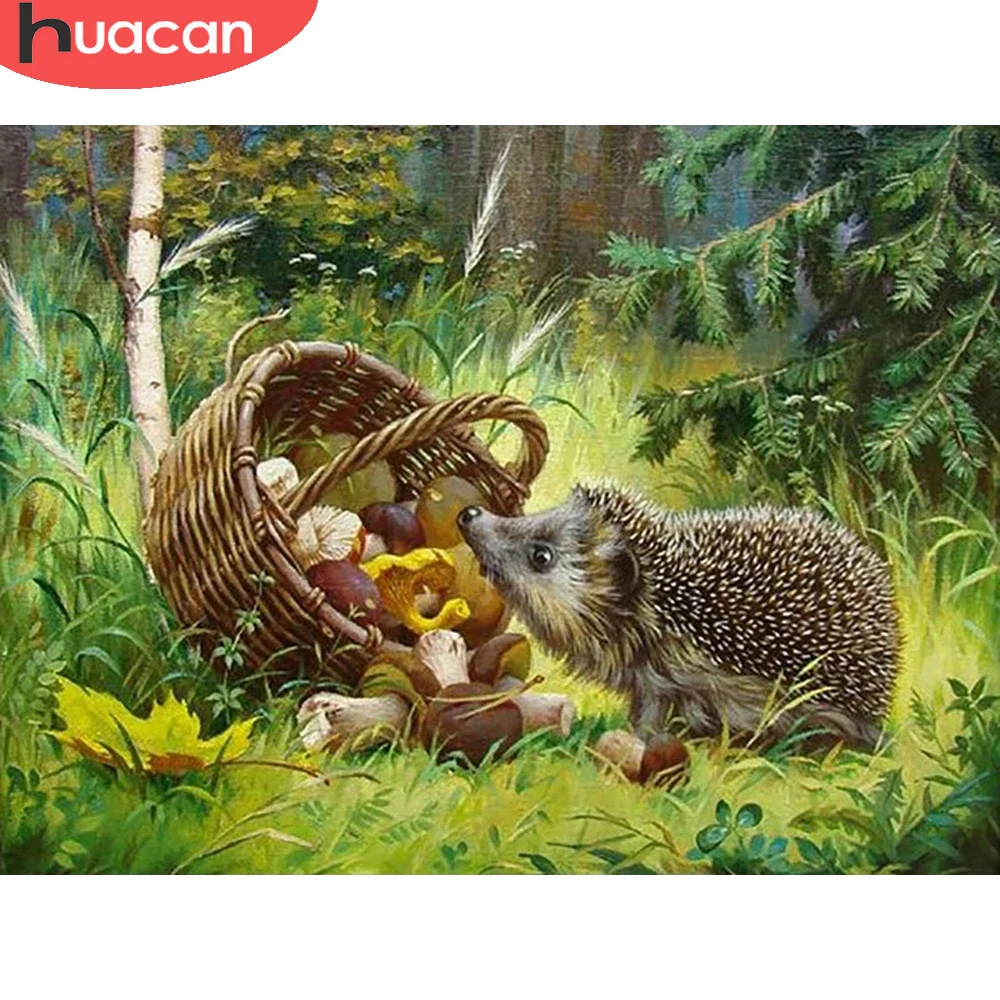 Алмазная живопись HUACAN, вышивка Ежик, корзина гриб, вышивка крестом, природный лес, животное, домашний декор