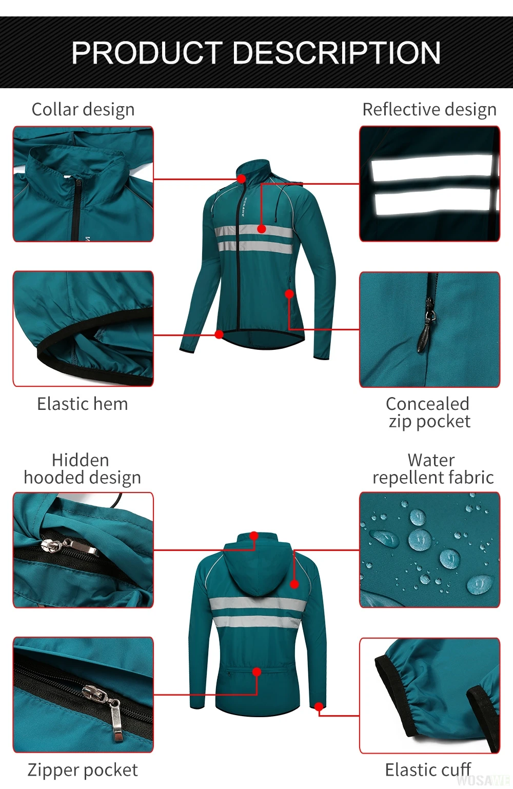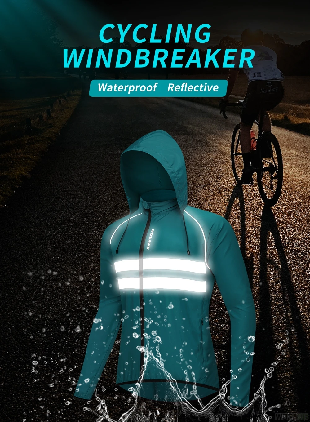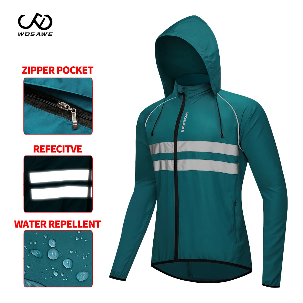 WOSAWE ветрозащитная Мужская велосипедная куртка с капюшоном Светоотражающая полоса Водонепроницаемая горная велосипедная куртка для езды на велосипеде ветровка для езды на велосипеде