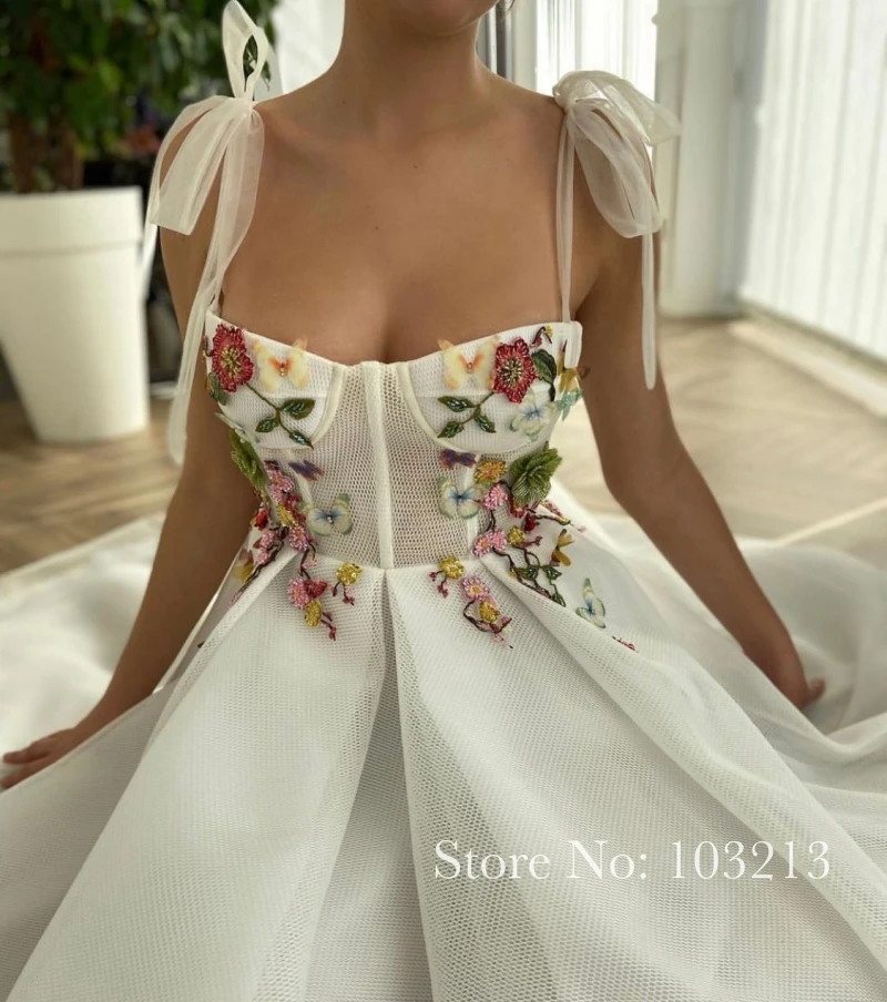 Новинка, Платья для вечеринок на тонких бретельках, красивые вышитые цветы, трапециевидные платья до середины икры, платья для выпускного вечера для девушек