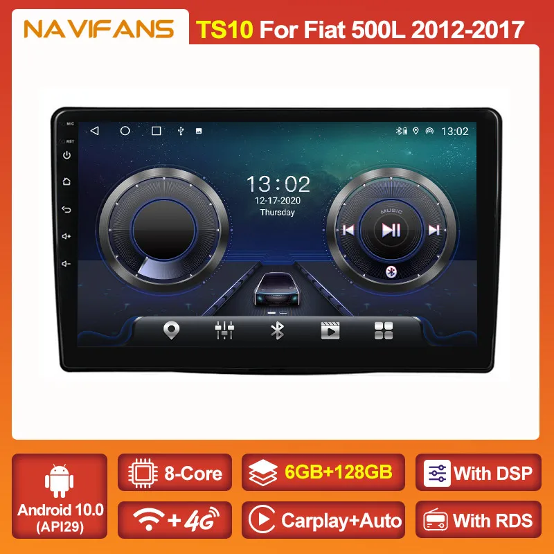 Автомагнитола 2DIN, мультимедийный видеоплеер, 4G Wi-Fi, Android 10, Dsp, Carplay, для Fiat 500L, 2012, 2013, 2014, 2015, 2016, 2017, GPS, навигация