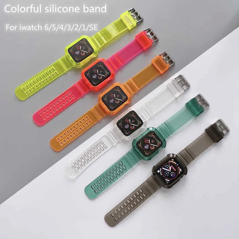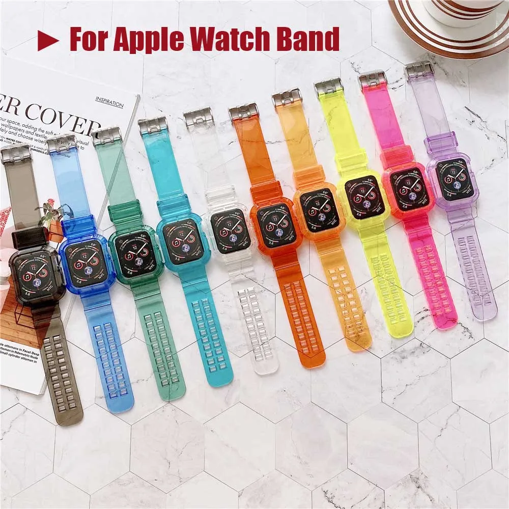 Ремешок спортивный для Apple Watch Band Series 6 1 2 3 4 5, Цветной силиконовый прозрачный браслет для Iwatch 5 4, 38 мм 40 мм 42 мм 44 мм wirst