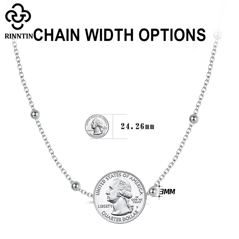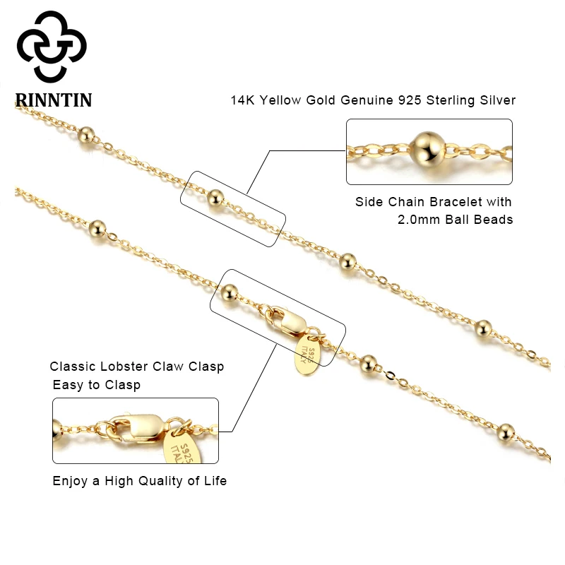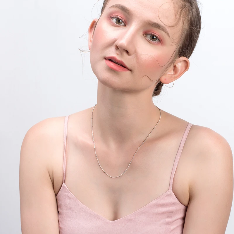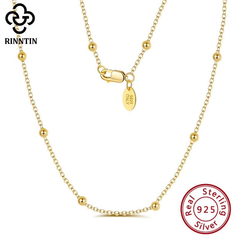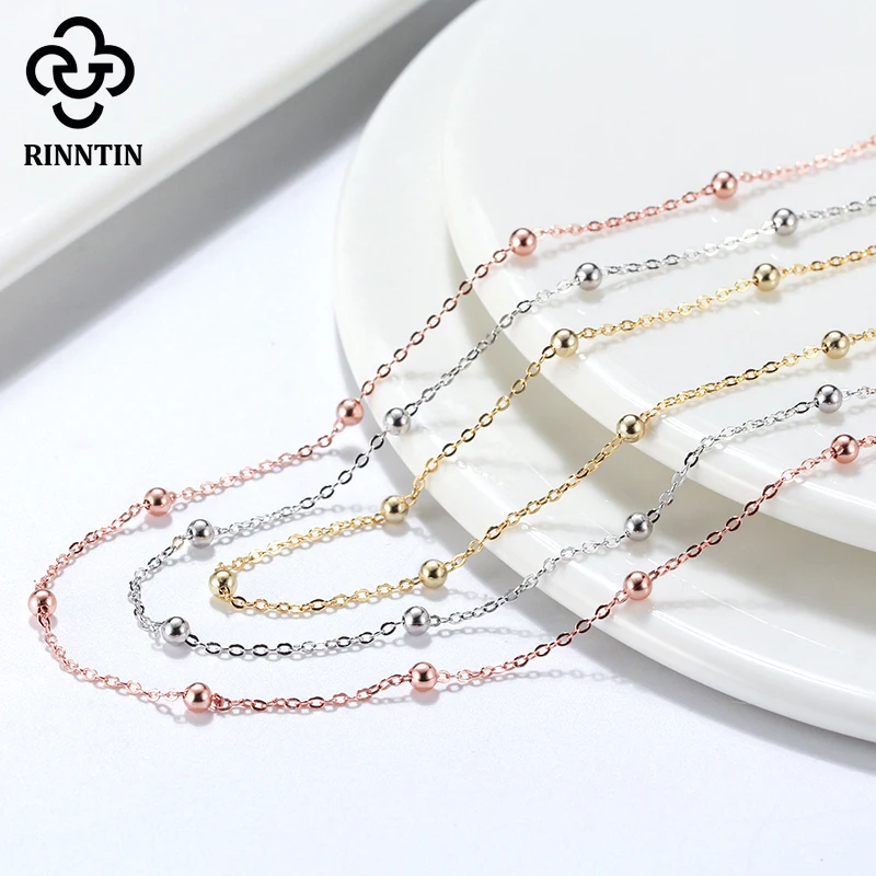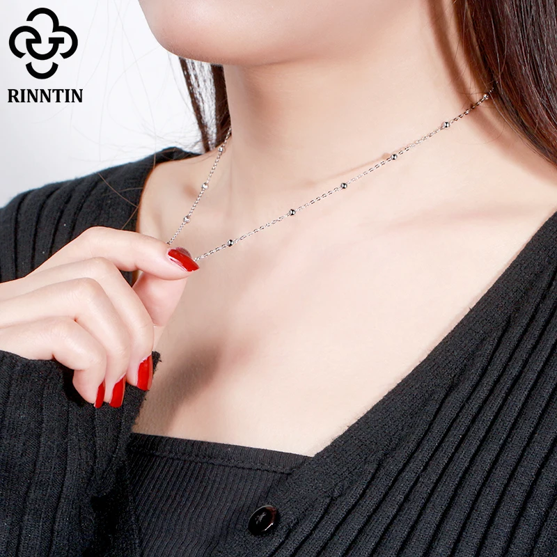 Rinntin 925 стерлингового серебра женские спутниковой связи цепи 1,0 мм кабельная цепь с шар бусы ожерелье для девочек, модное ювелирное изделие, SC43