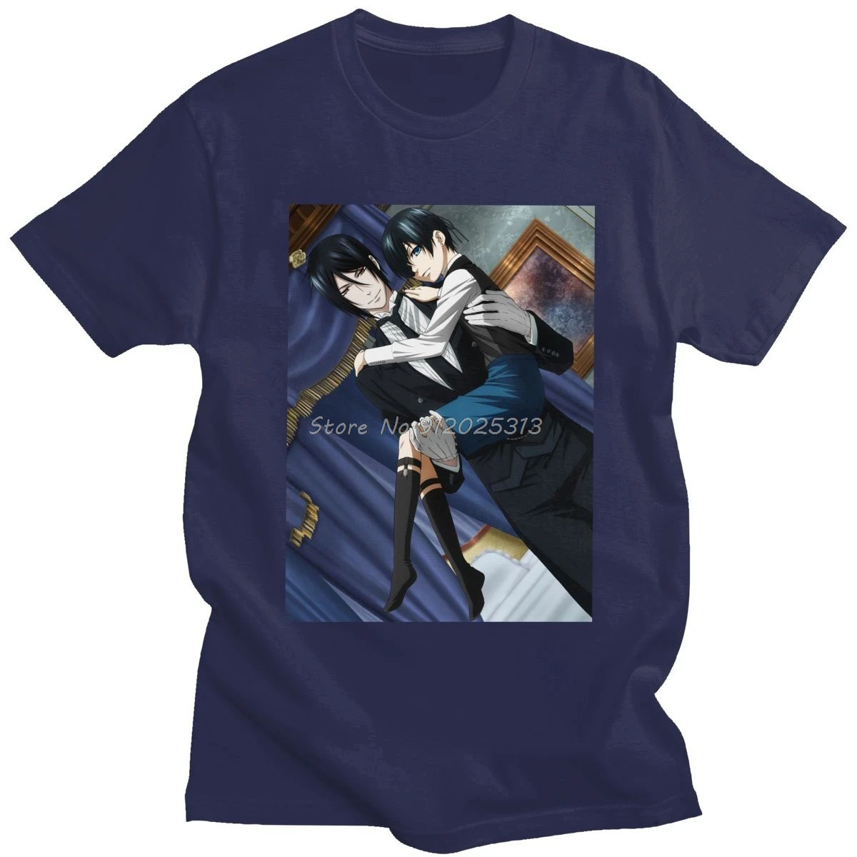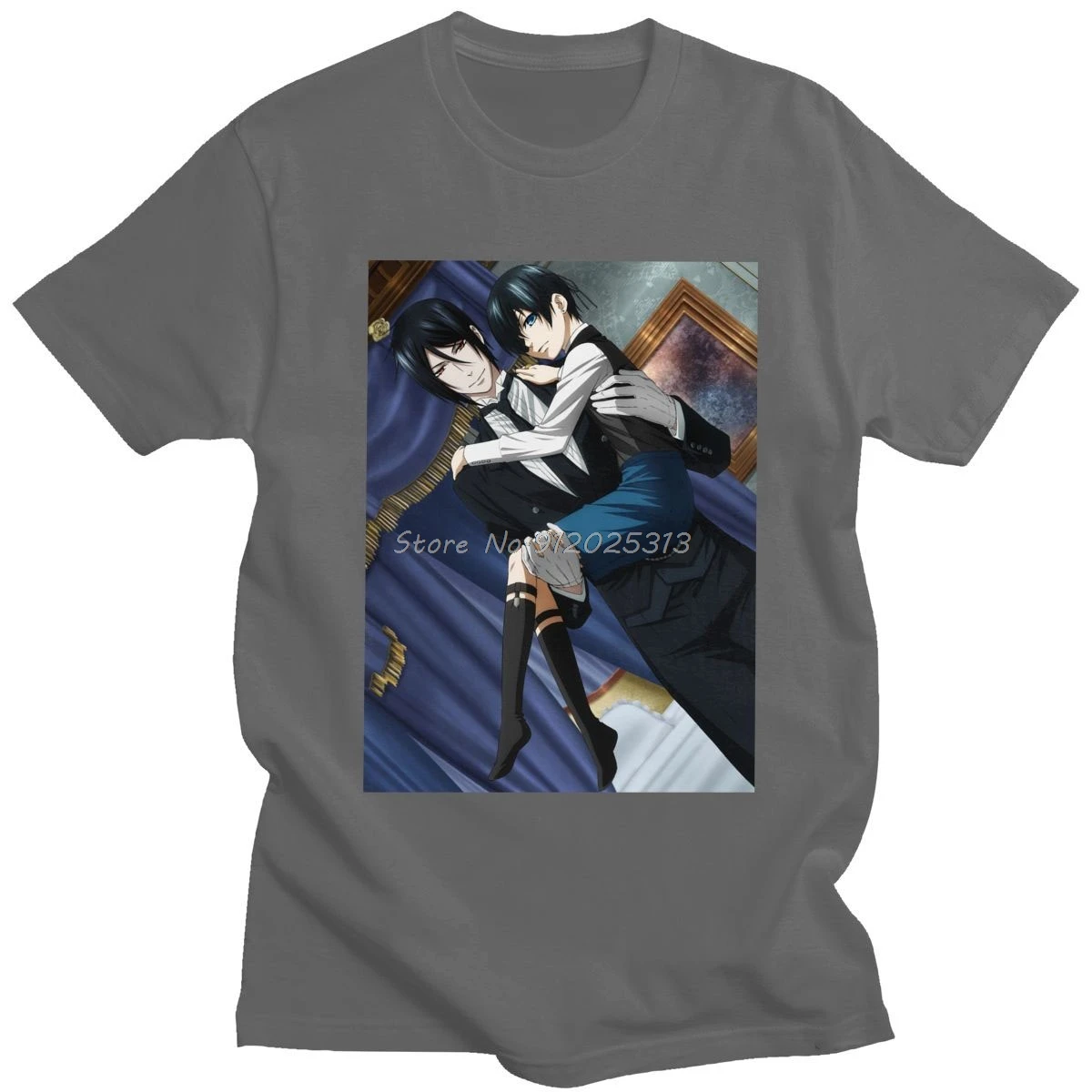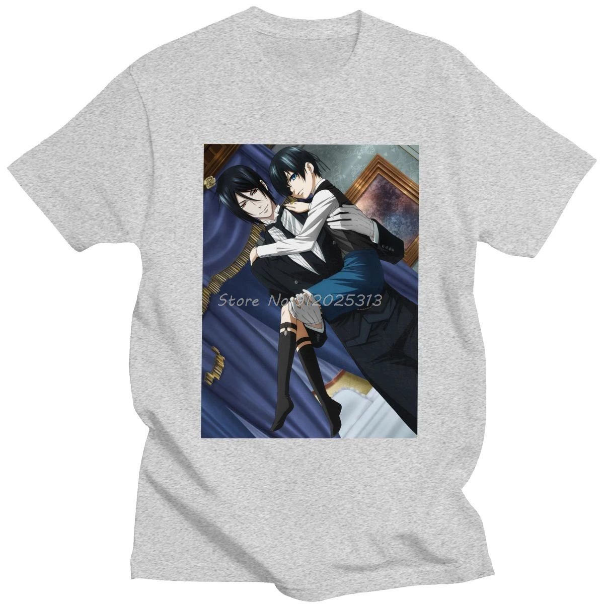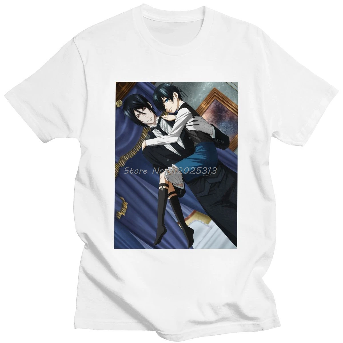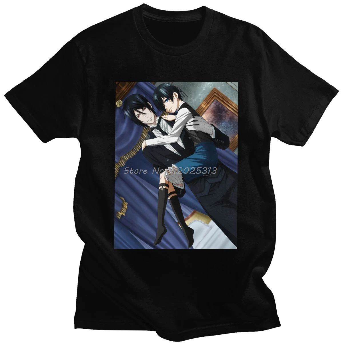 Футболка с изображением черного Батлера, себастьев, себастьев, небеса, Phantomhive, Мужская футболка с коротким рукавом Kuroshitsuji, аниме футболка с принтом манги, хлопковый топ