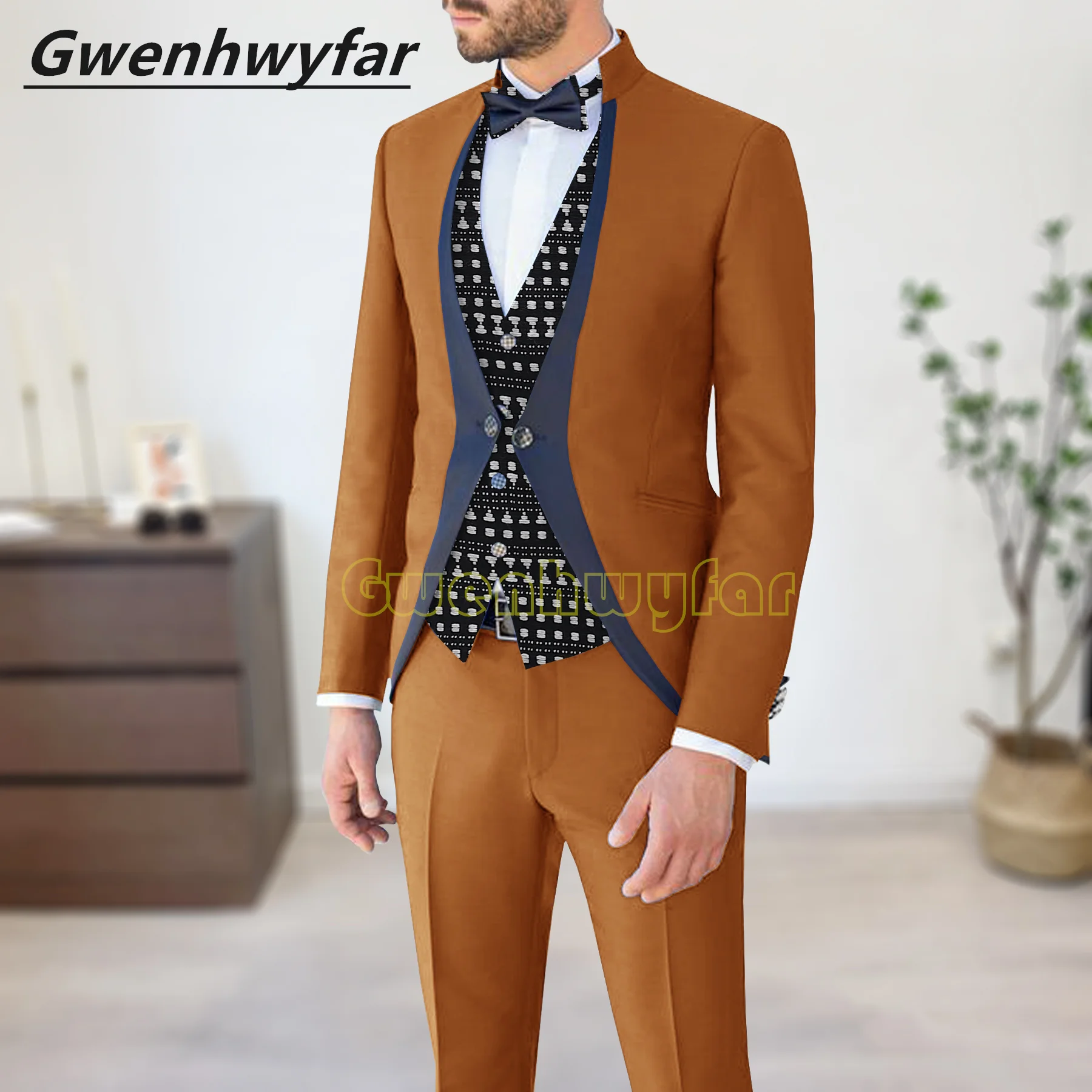 Костюм Gwenhwyfar мужской темно-синий с отделкой под заказ, модный смокинг с воротником-стойкой для выпускного вечера, формальный темно-фиолетовый