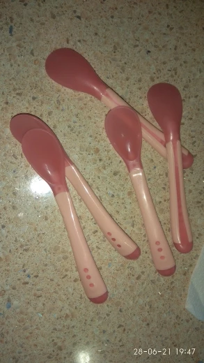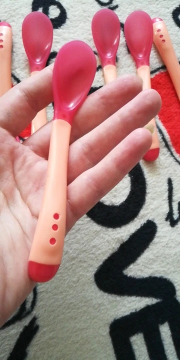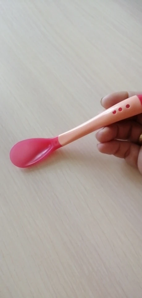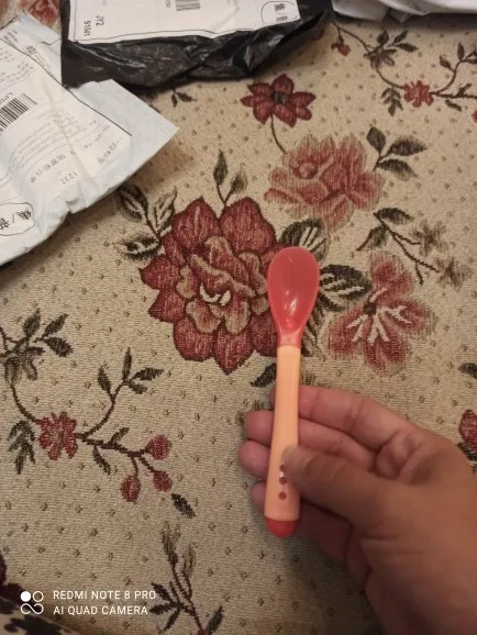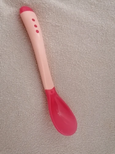 Температура полости рта взрослых выше, чем у младенцев, а температура размещения пищи в людей не является точной и гигиеничной. При использовании данного продукта для кормления малыша, если температура пищи выше 43 градусов Цельсия, Окружающая область ложки сразу побелет. Если температура еды правильная, ложка вернется к первоначальному цвету. Мягкая ложка не повредит рот и зубы малыша..