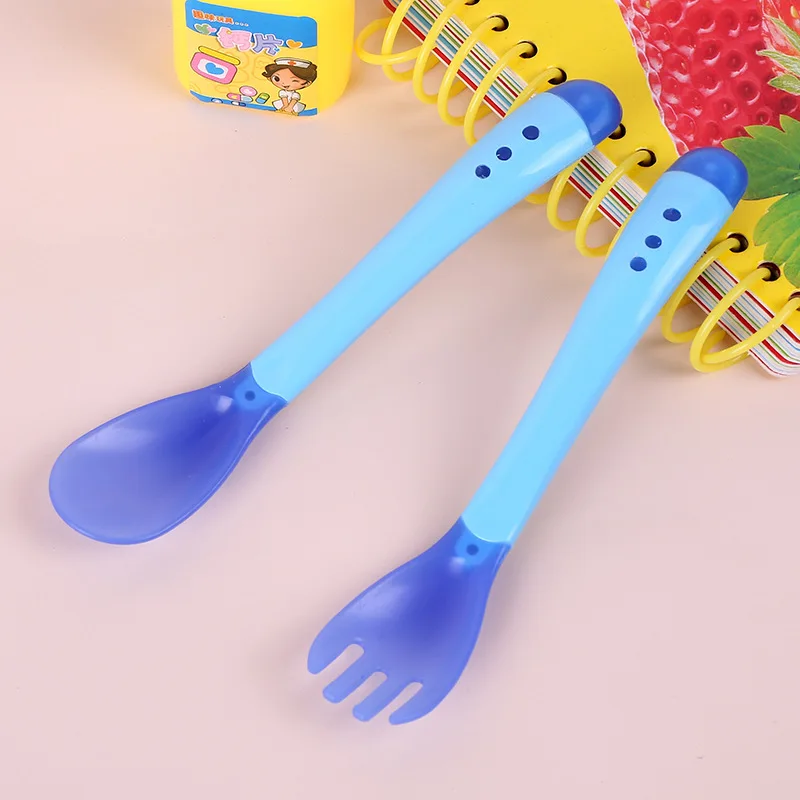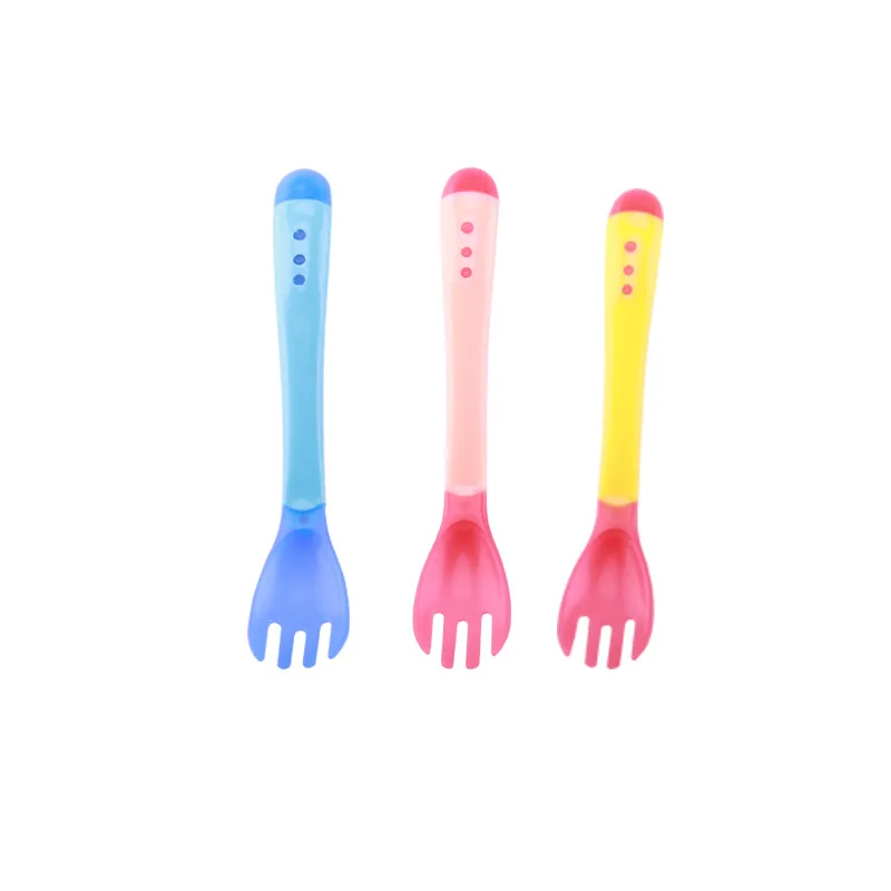 Силиконовая ложка-вилка, детская посуда, детские ложки, мягкая безопасная Термочувствительная посуда для защиты от ожогов