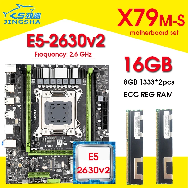 Комплект материнской платы X79, Intel Xeon E5-2630 v2 CPU M.2 MATX с 2cps * 8 ГБ = 16 Гб DDR3 1333 МГц 10600 ECC REG RAM M.2 SSD интерфейс