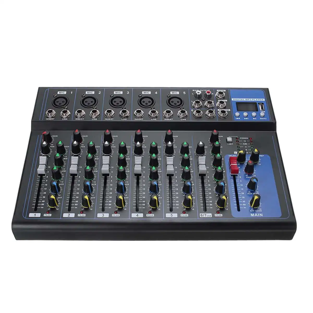 7 канальный цифровой Микрофон Звук микшерный пульт 48V Phantom Мощность профессиональный караоке аудио усилитель, работающий на основании технологии "блютус" с USB