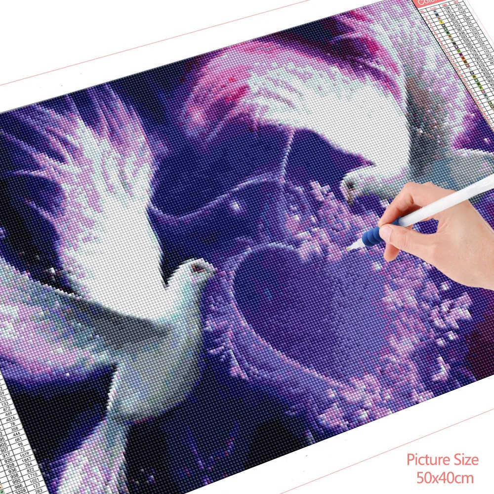 Алмазная 5d-картина HUACAN, полное Алмазная вышивка Мир голубей, мозаика с изображением животных, сердца, цветка