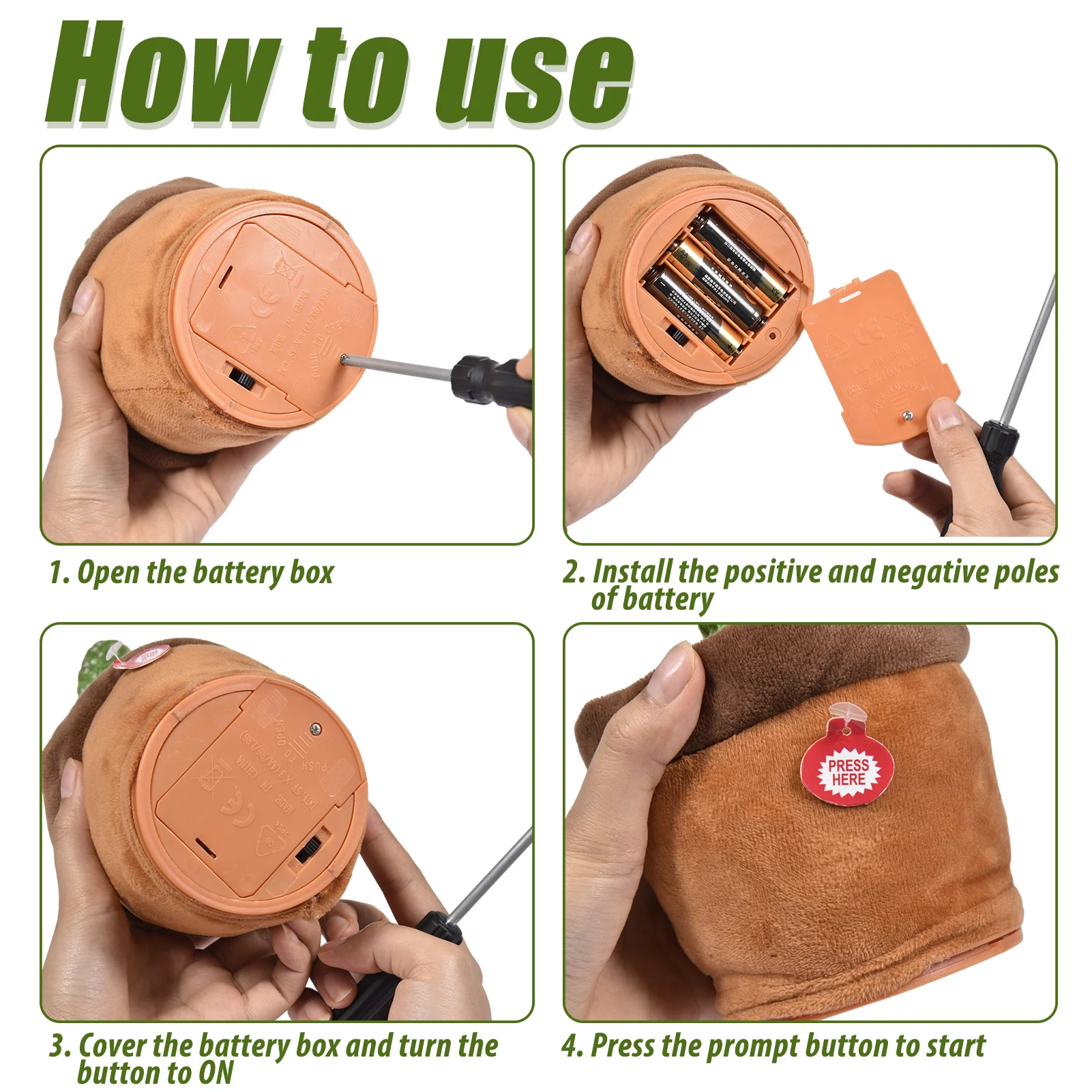 Точки пули:1. Новые стили: кактус, который может спеть и танцевать, подходит для вечеринок с рождественскими темами, шарфом и солнцезащитными очками, гитарными темами, мексиканскими темами, Гавайскими темами, более модные стили приносят больше радости.2. Безопасный Материал: Изготовлен из мягкого материала, удобный, нетоксичный, безопасный для детей. Игрушка может танцевать, спеть, двигаться и вращаться.3. Несколько функций: Забавная и милая плюшевая игрушка кактуса может танцевать, петь и двигаться. Чтобы подарить детям счастливое время. Поставляется с тремя английскими песнями.4. Размер изделия: высота около 32 см, требуется 3 батарейки типа АА (не входят в комплект). Метод запуска: Установите батарею, включите переключатель в нижней части, а затем нажмите кнопку подсказки, кактус может начать пение и танцы.5. Уменьшить стресс: игрушка привлечет внимание детей и принесет им радость! Также уменьшает стресс для взрослых.