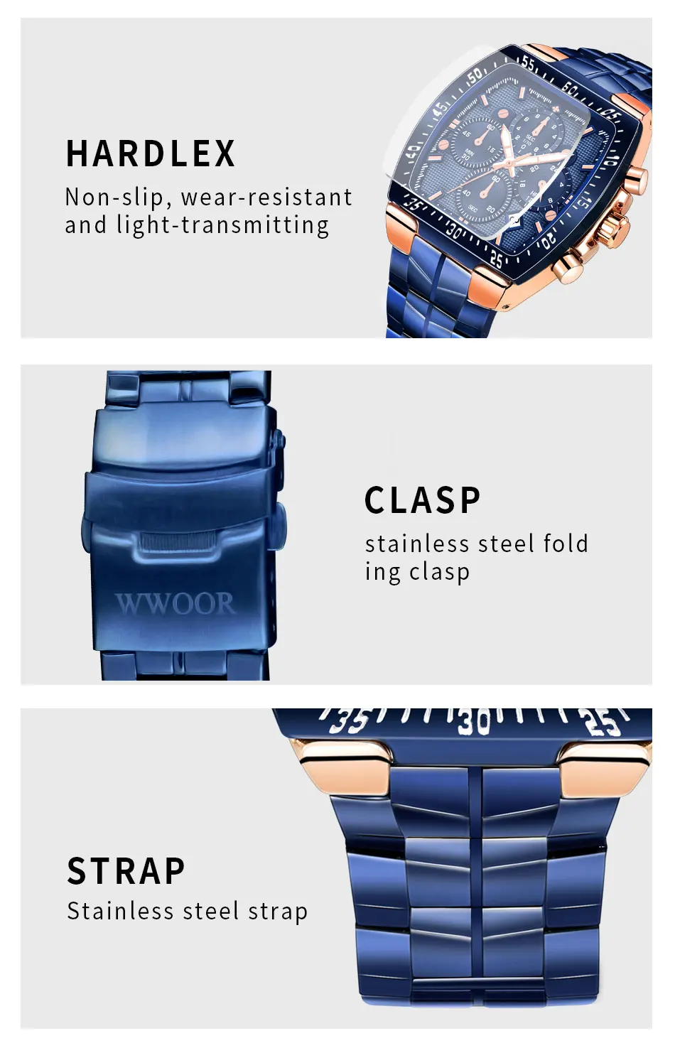 WWOOR 2021 новые модные розовые синие квадратные часы мужские спортивные военные кварцевые повседневные водонепроницаемые наручные часы с хронографом Reloj Hombre