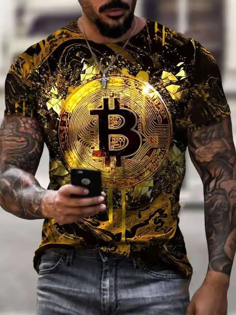 Футболка мужская с 3d принтом криптовалюты, приталенная оверсайз, в стиле хип-хоп, с коротким рукавом, уличная одежда, новое поступление