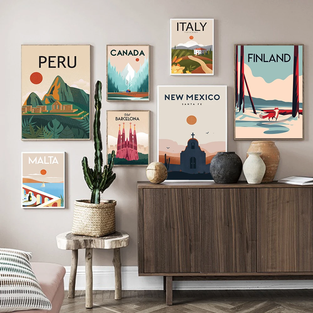 Плакат в скандинавском стиле, для путешествий, для Перу, Мальты, Финляндии, Барселоны