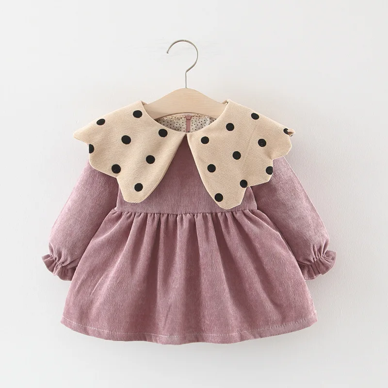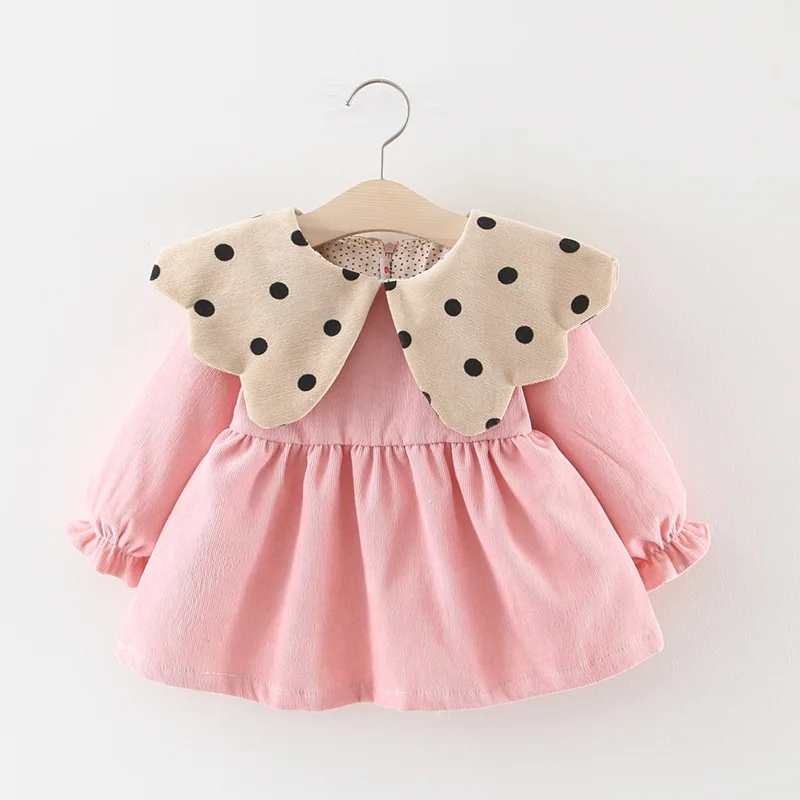 Одежда для маленьких девочек, платье, осенне-зимнее теплое платье, милое платье принцессы в горошек, праздничная одежда для новорожденных, одежда для девочек