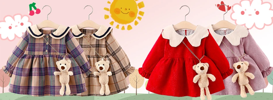 Осень-зима Детское платье для маленьких девочек однотонное детское ...