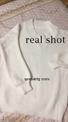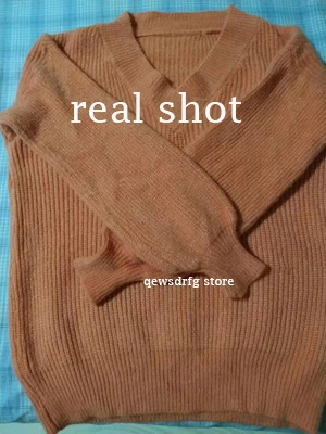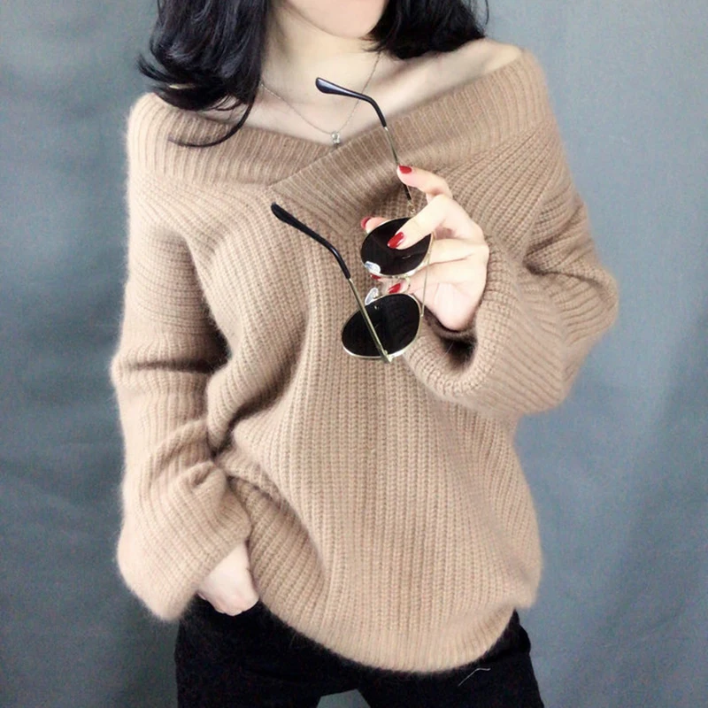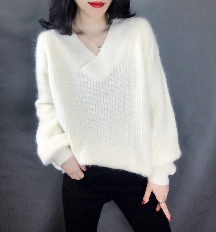 Свитер женский осенне-зимний, однотонный, с V-образным вырезом