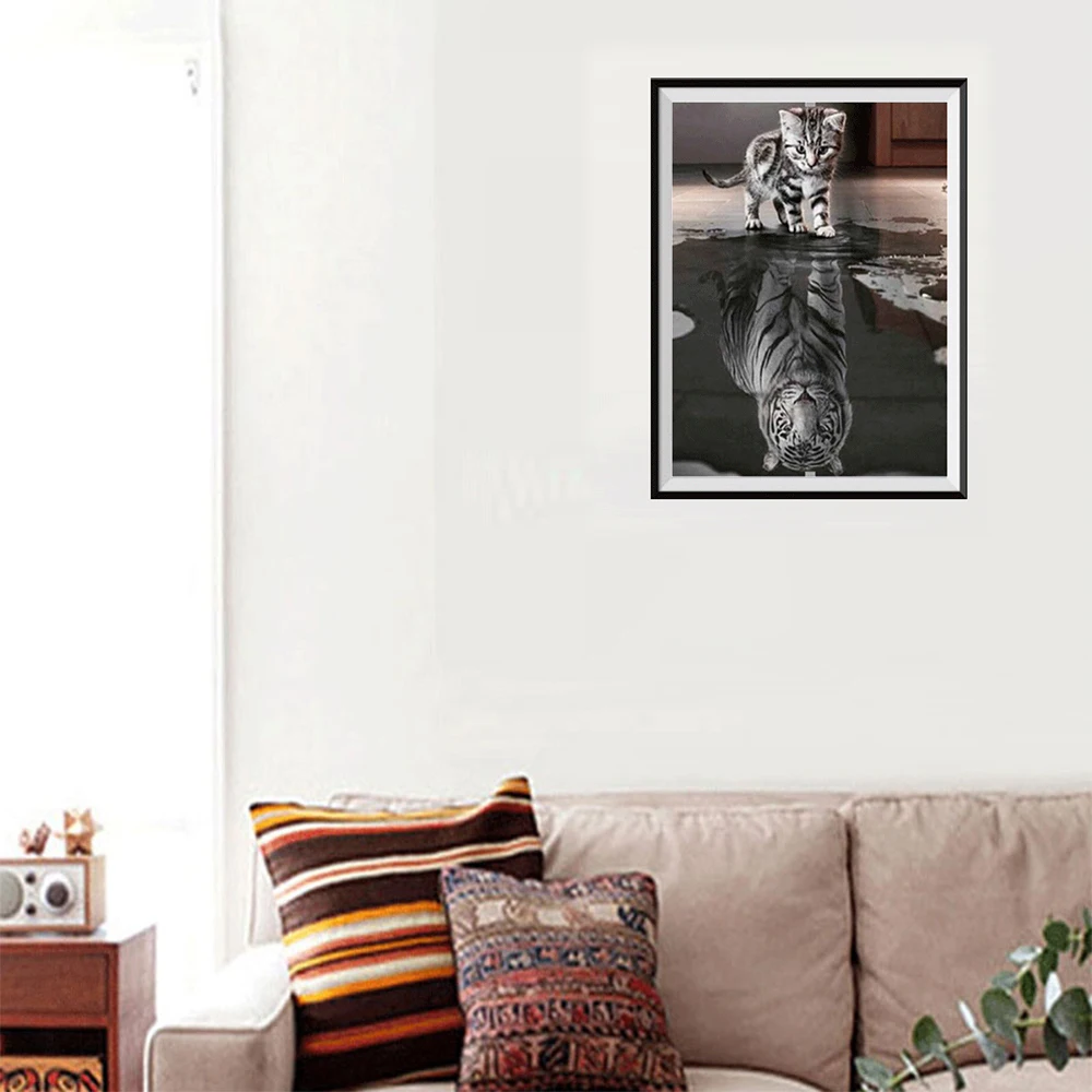 Алмазная живопись 5d сделай сам, мозаика с имитацией тигра, вышивка крестиком, домашнее украшение, настенная наклейка, ремесла