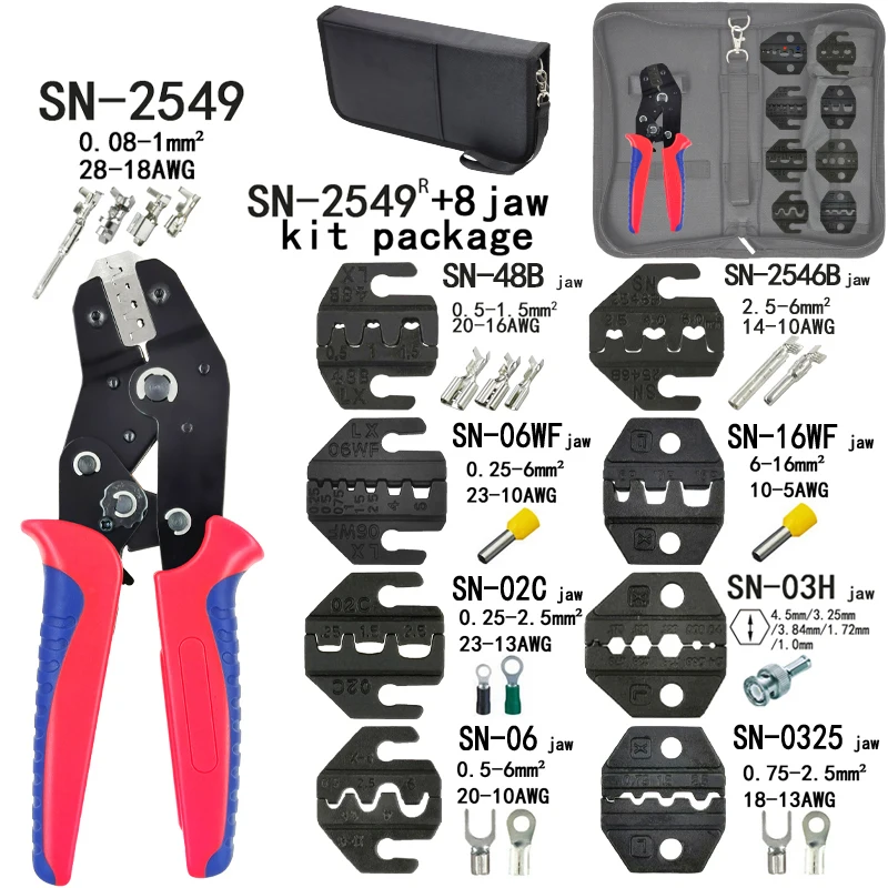 Обжимные клещи SN-2549 8 челюсти комплект посылка для 2,8 4,8 XH2.5...