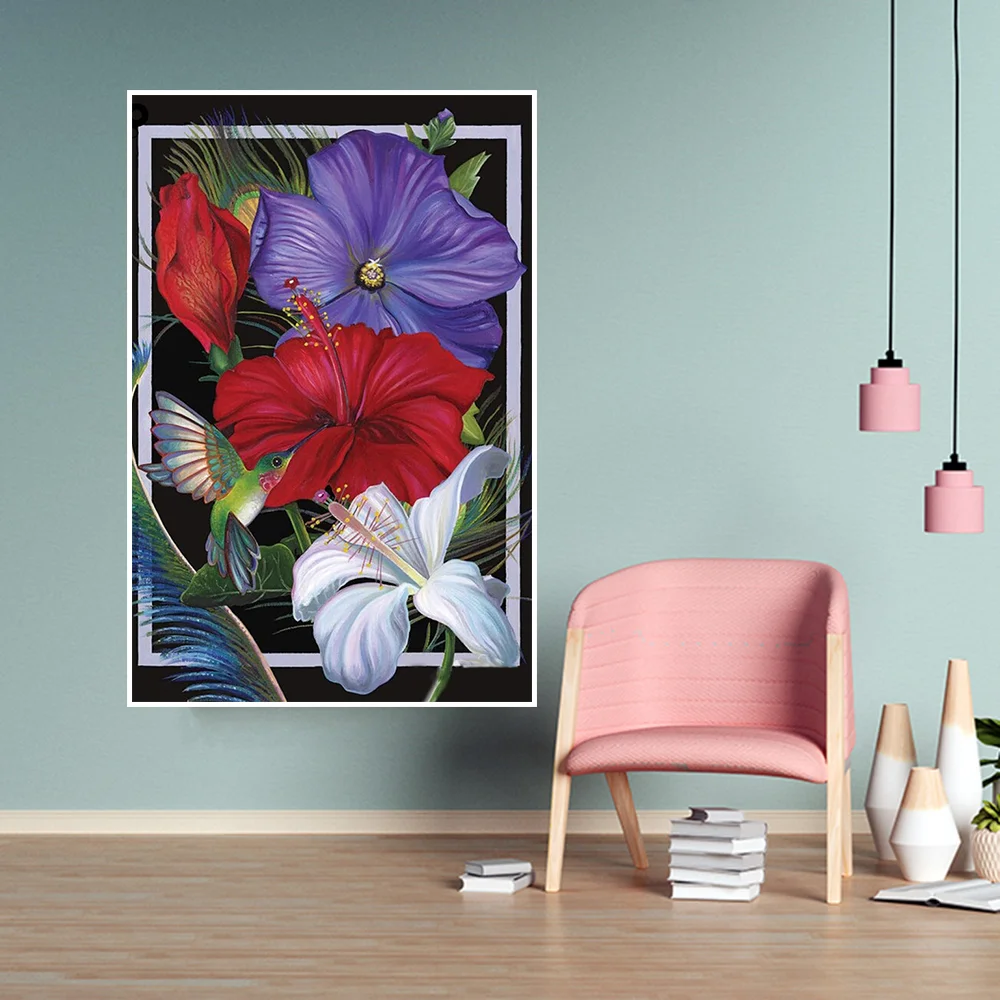 Алмазная 5D Вышивка Huacan, мозаика с цветами, стразы, птицы, цветочные модульные картины, украшение для дома