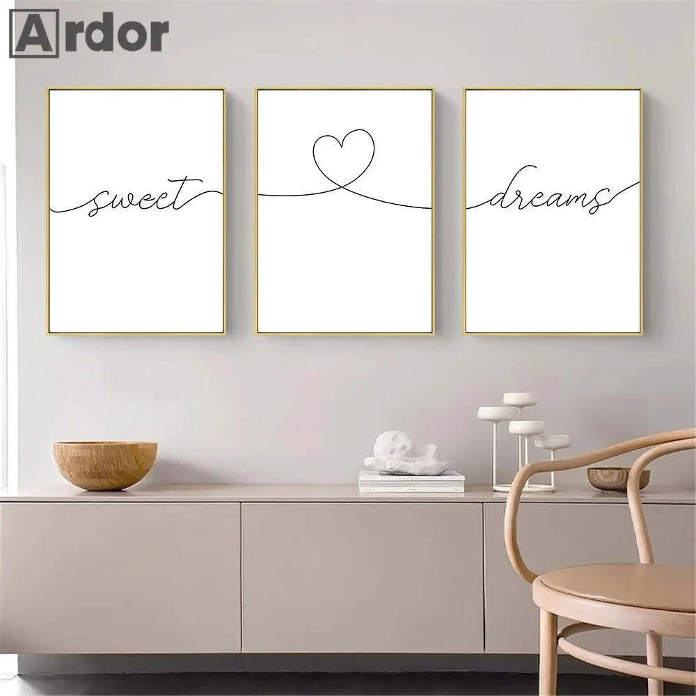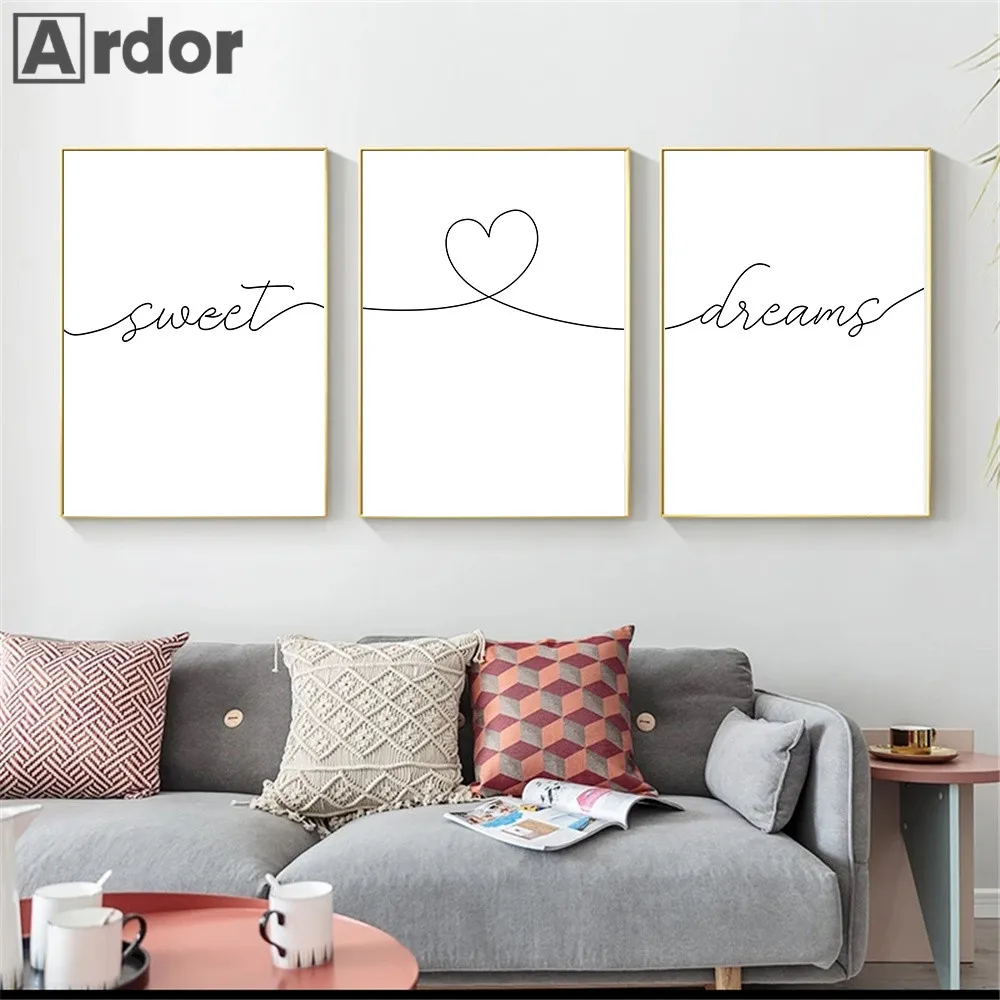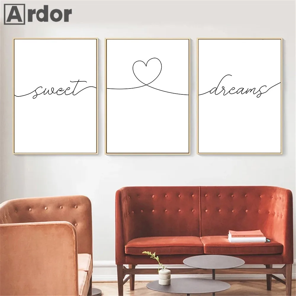 Черно-белые милые мечты цитаты печать для детской стены Искусство на холсте плакат линии сердце минималистская живопись настенные картины Домашний декор