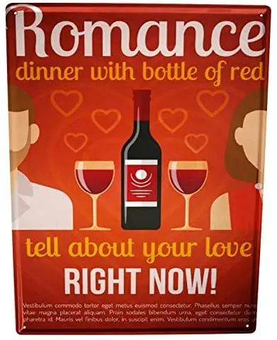 Ностальгический жестяной знак ужин с бутылкой красного вина Романтика винтажное украшение, металлический постер, искусство 12x8